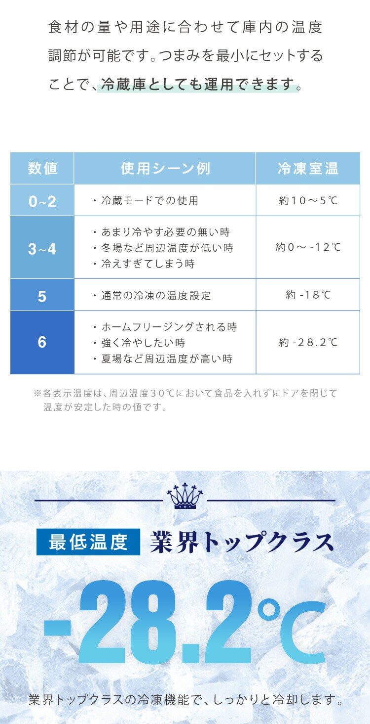 温度調節:7段階調整(0~6) (+10~ -28.2℃)