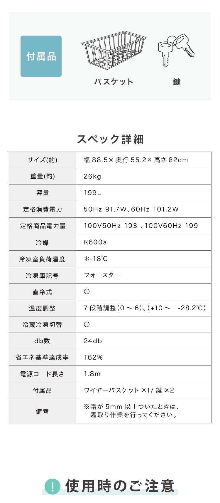 定格商品電力量:100V50Hz 193 100V60Hz 199