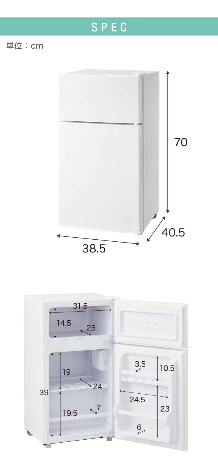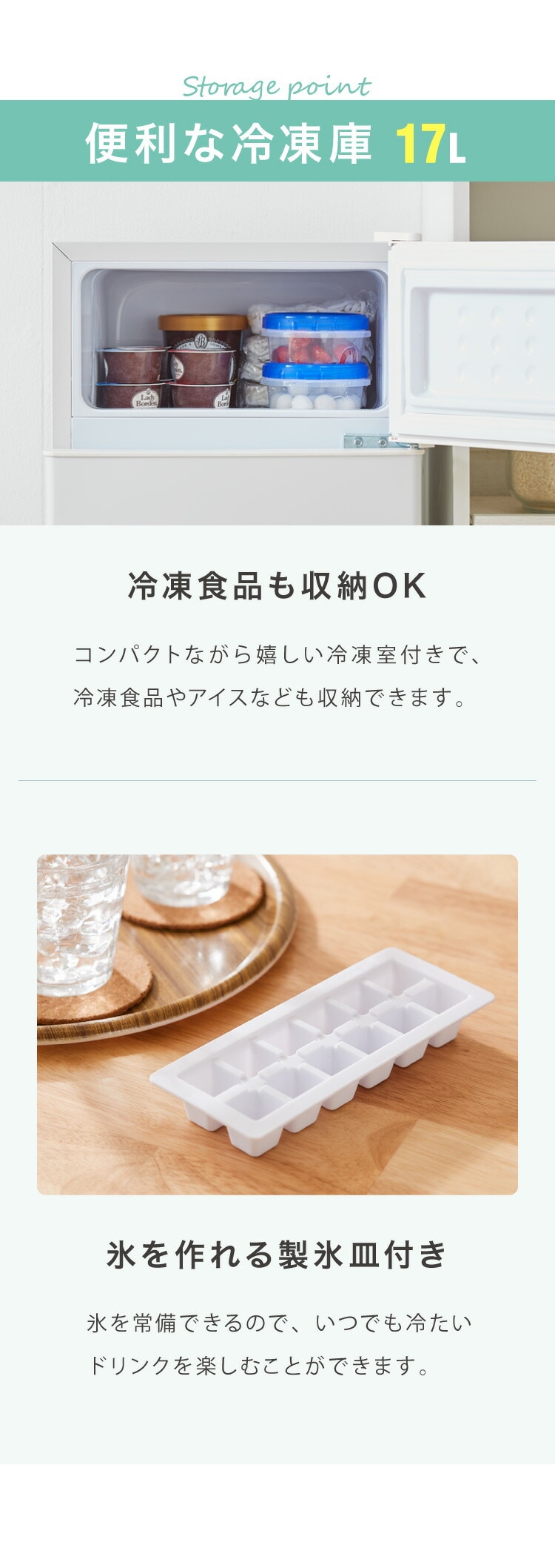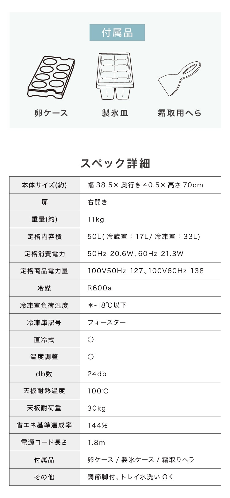 サイズ:50L(冷蔵室:17L/冷凍室:33L)(幅38.5cm*奥行き40.5cm高さ70cm)