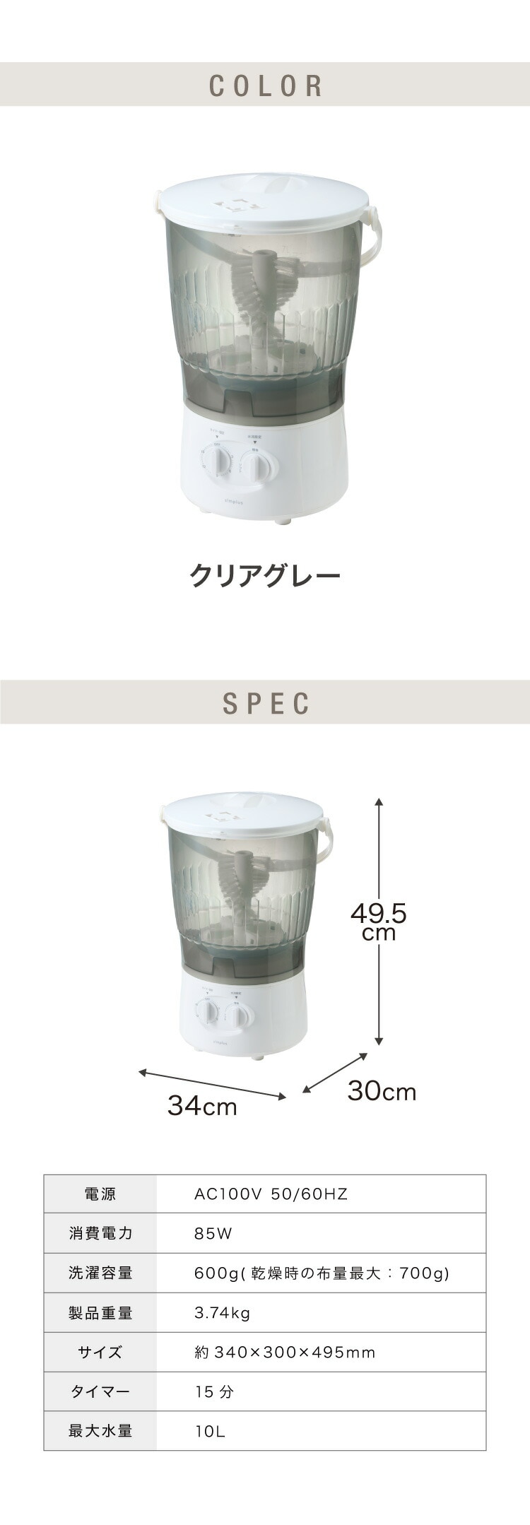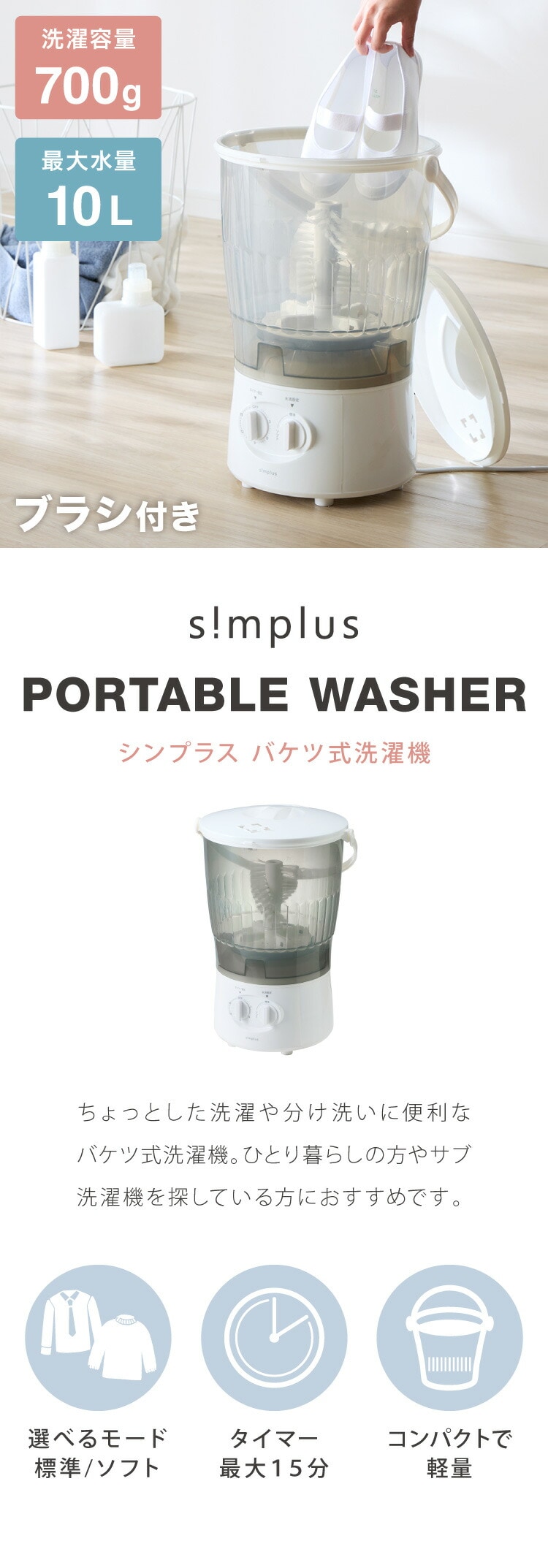 simplus バケツ洗濯機 ブラシ付き バケツウォッシャー 小型洗濯機 一人暮らし 分け洗い セカンド洗濯機 泥汚れ 汚れ落とし タイマー式 ベビー用品 ペット用 シンプラス SP-BKWMB01【送料無料】