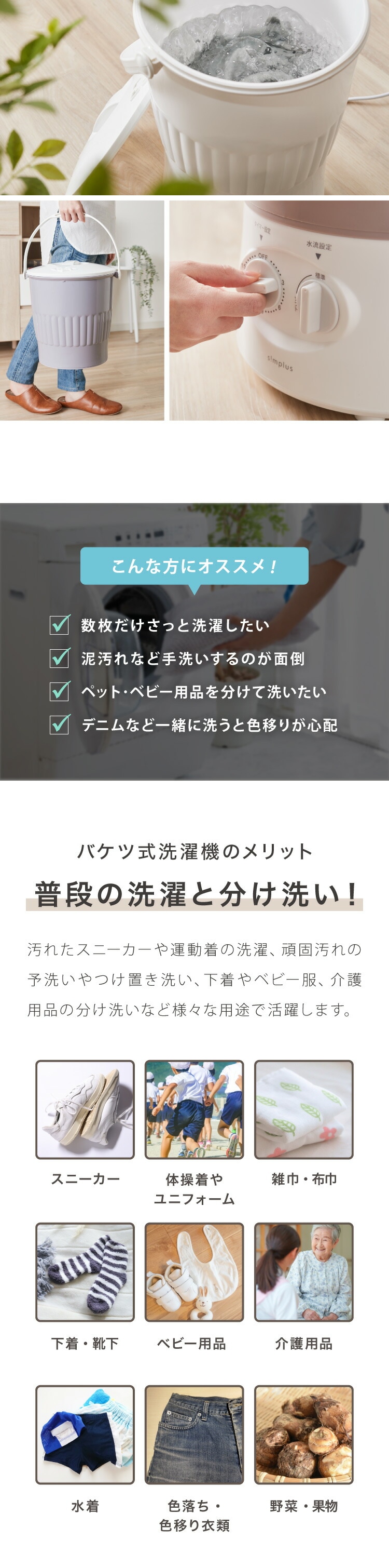 分け洗い、予洗い、バケツウォッシャー、洗濯機、一人暮らし、小型洗濯機、バケツ洗濯機、セカンド洗濯機、サブ洗濯機、バケツ、バケツランドリー、セカンドランドリー、持ち運び、子供、ベビー、泥汚れ、タイマー式、汚れ落とし、芋洗い、野菜洗い、ベビー用品、マルチウォッシャー、マスク、野球、サッカー、ユニフォーム、作業着、上履き、パワフル、洗濯、排水、ハンドル、ペット用品、ペット、ブラシ付き