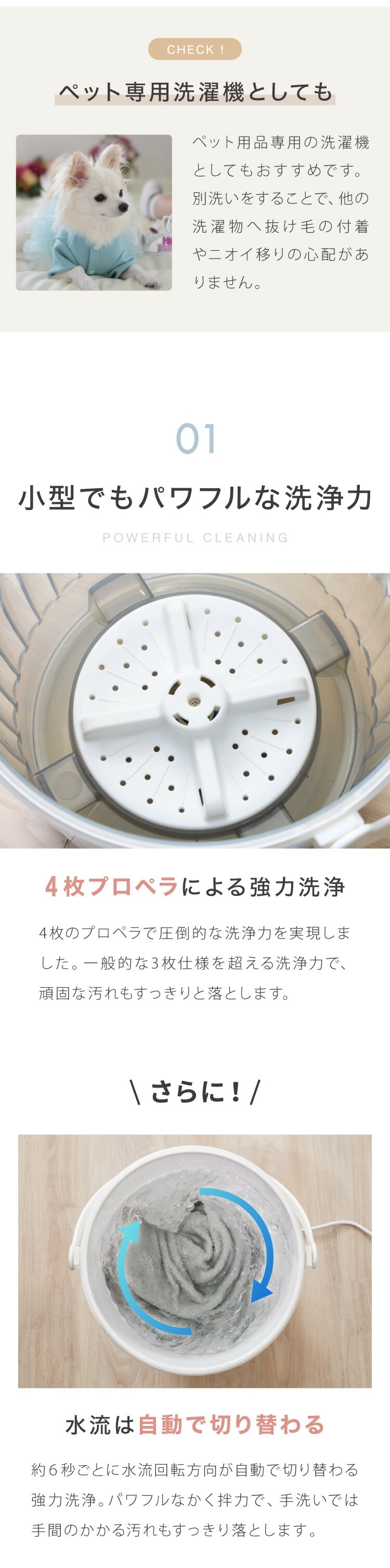 [1] 4枚プロペラで強力洗浄