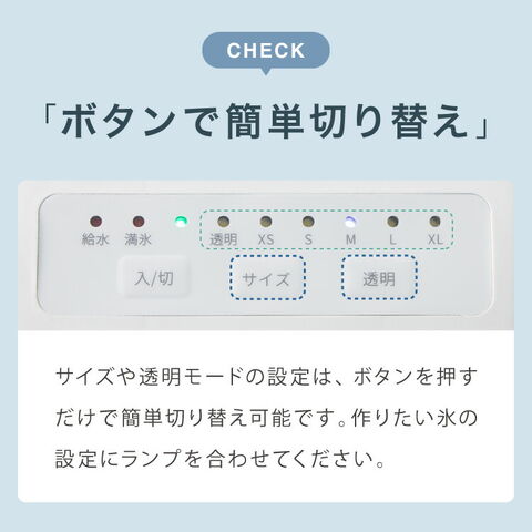 氷が満杯になると自動で停止し、水が不足すると自動で停止する安全機能付き。