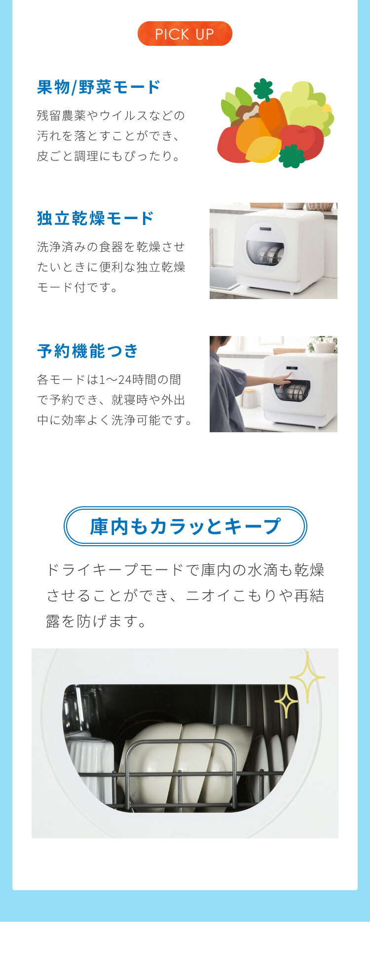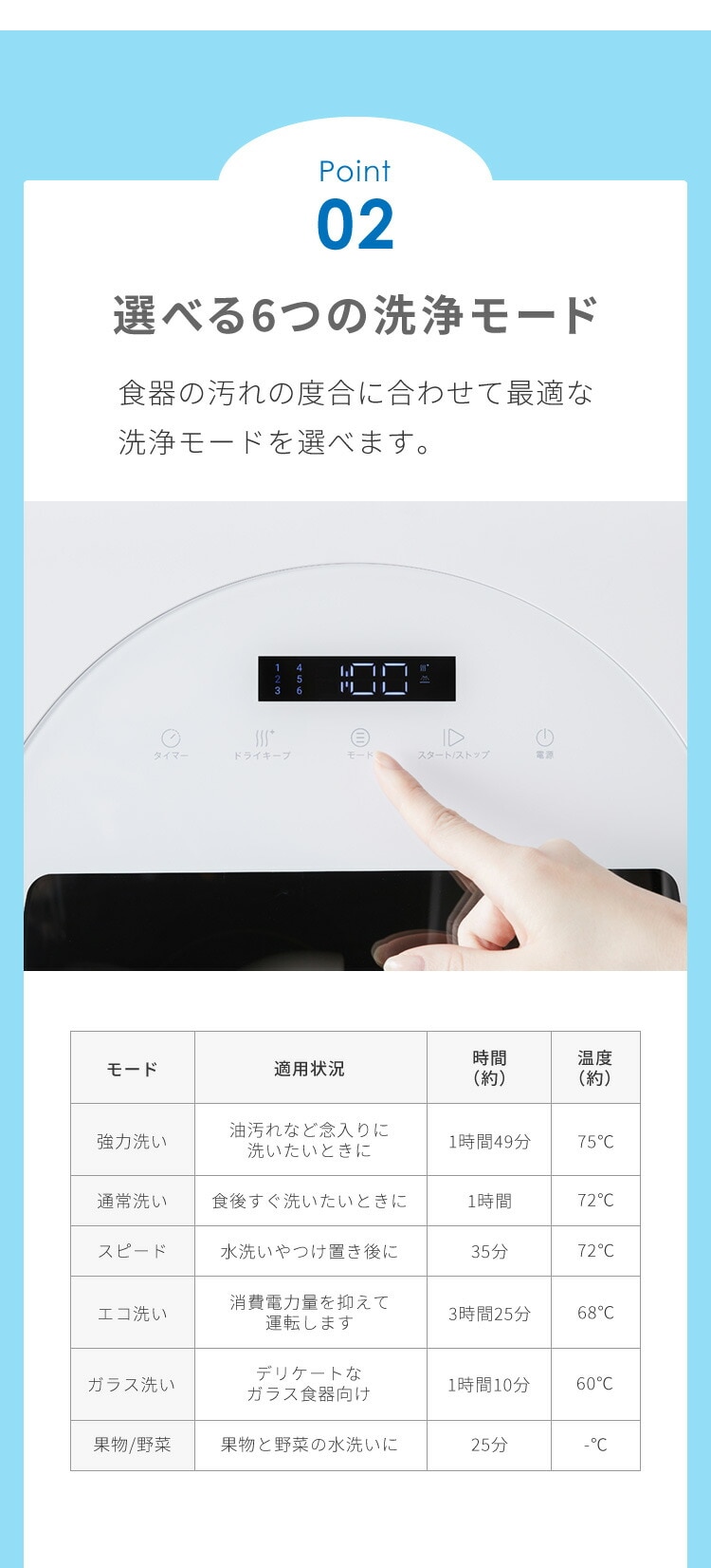 タッチパネル、温風乾燥、食器洗浄乾燥機、時短