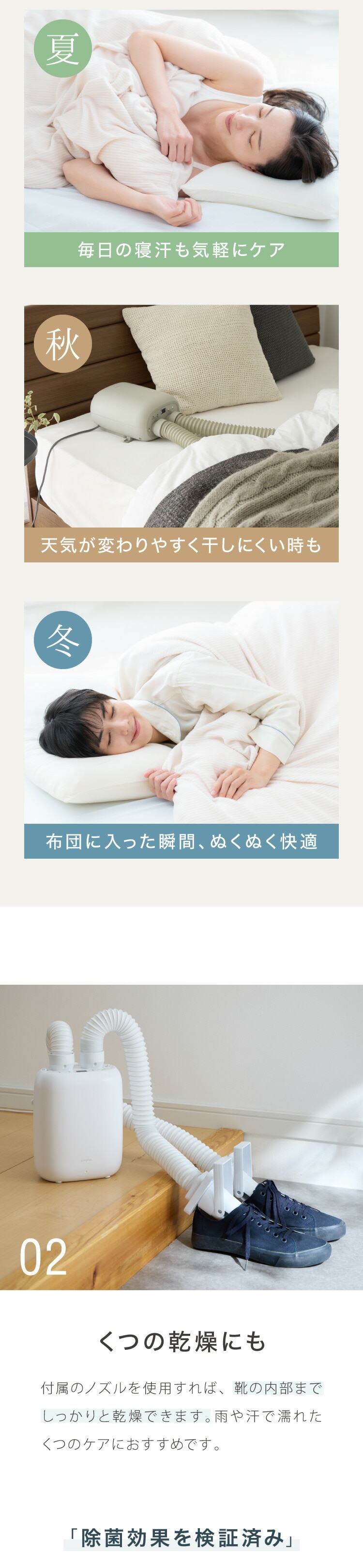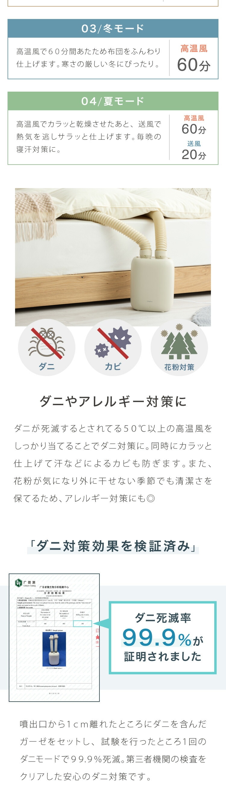 高温風でダニやカビを効果的に除去し、花粉も軽減。アレルギー対策にも最適です。