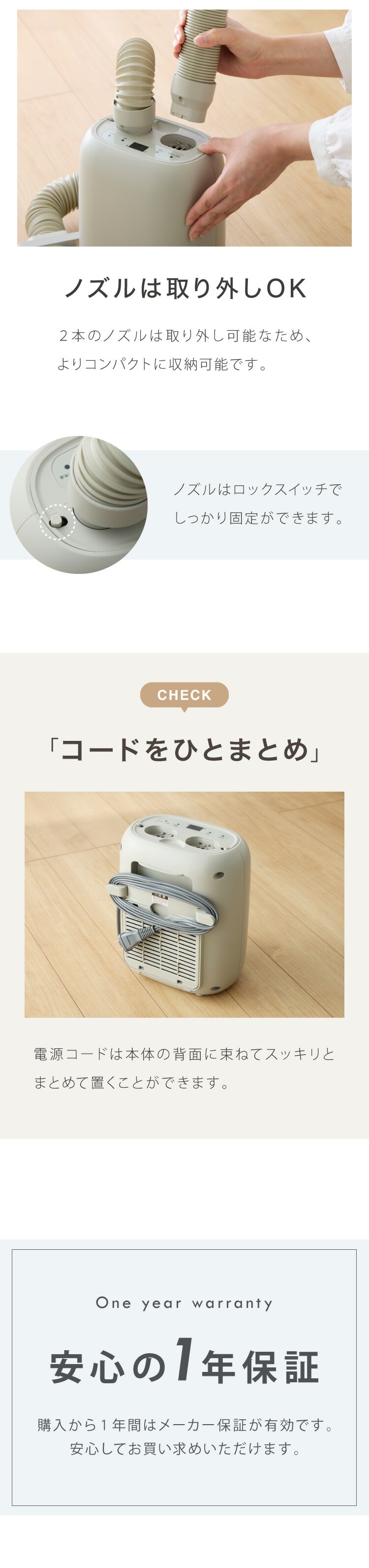 電源コードは束ねてコードホルダーにすっきり収納。使用後も片付けが簡単です。