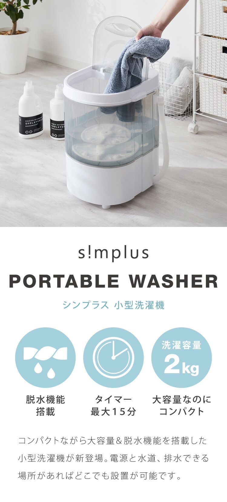 simplus ミニ洗濯機 小型洗濯機 2kgまで対応 ミニランドリー 脱水付き 排水 すすぎ コンパクト タイマー付き 一人暮らし 分け洗い 泥 介護 育児 赤ちゃんの衣類 シンプラス SP-NWMN01【送料無料】