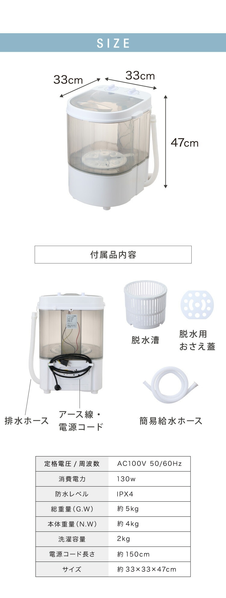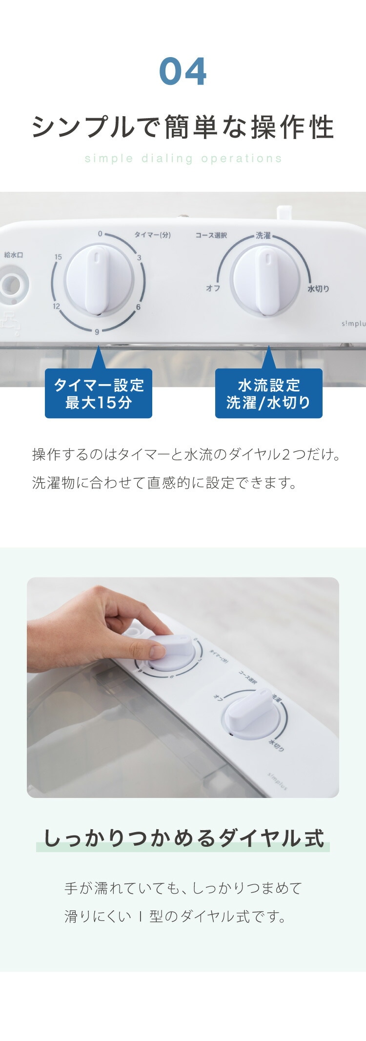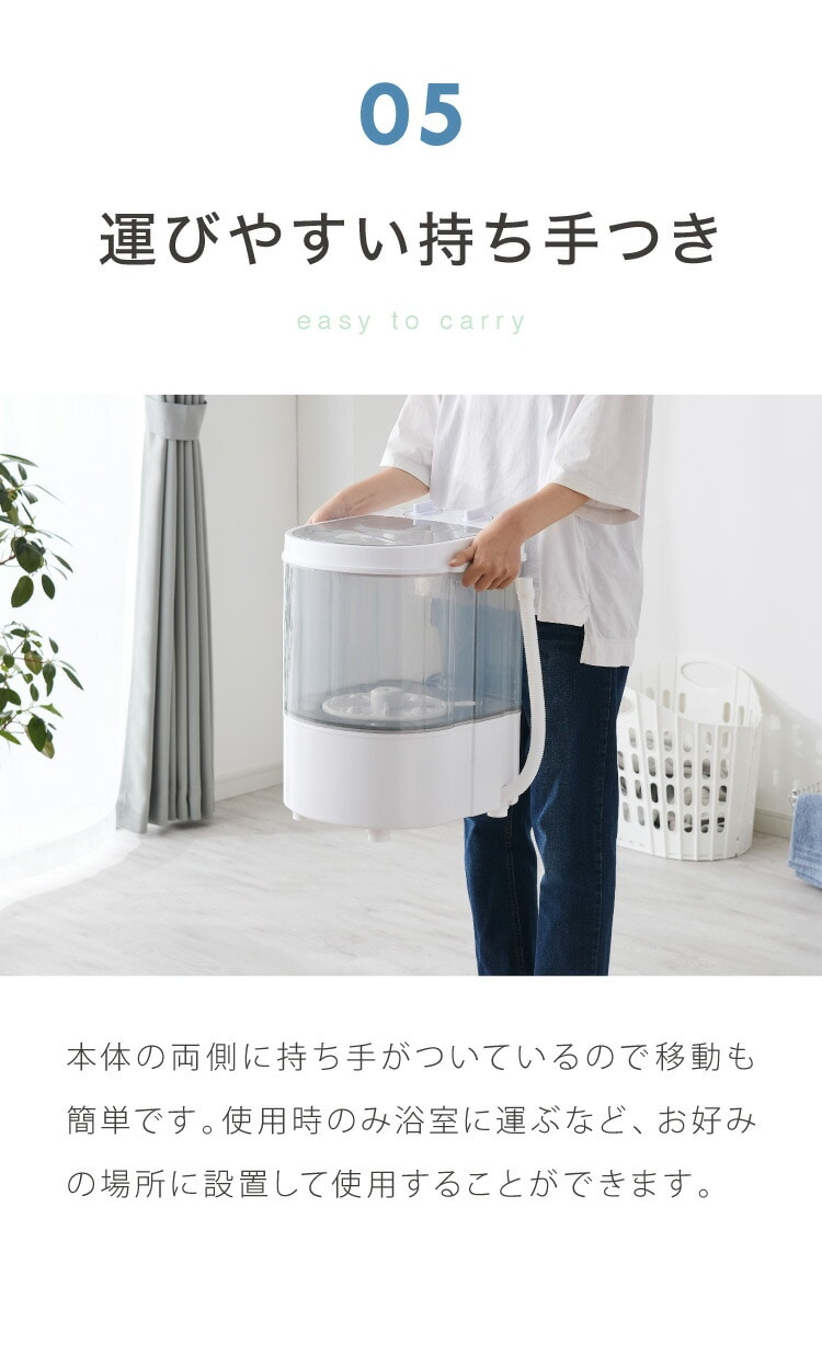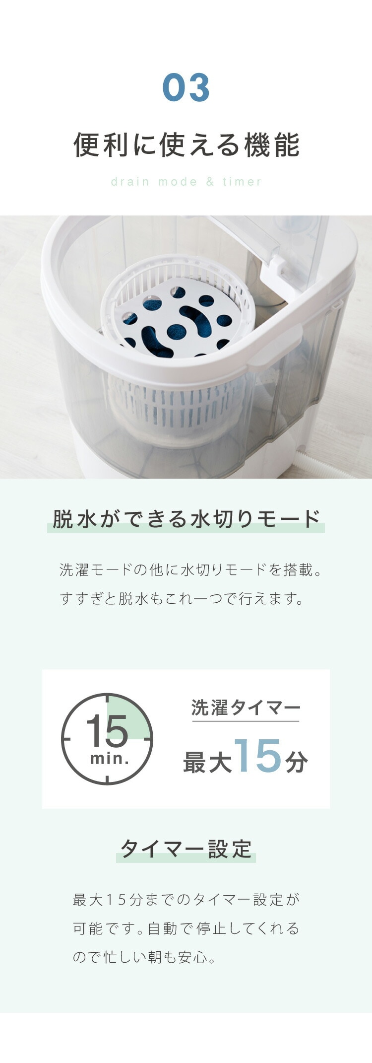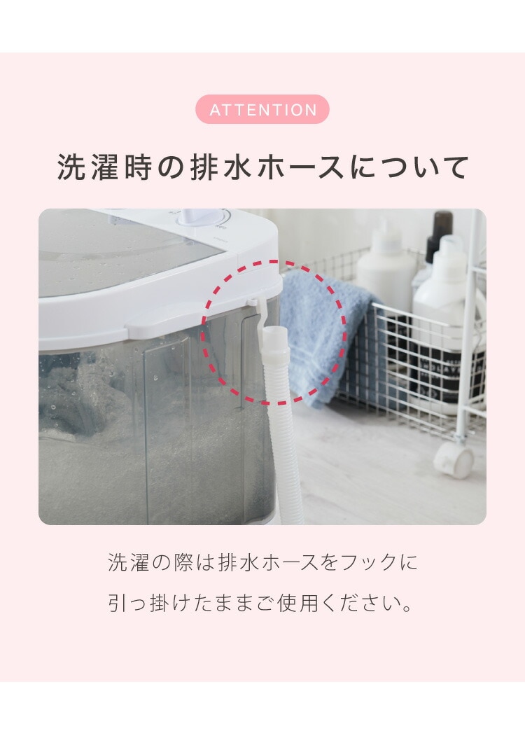 ※本製品の水切りは簡易的な水分除去(脱水補助)です。一般的な全自動洗濯機の高速脱水とは性能が異なります。