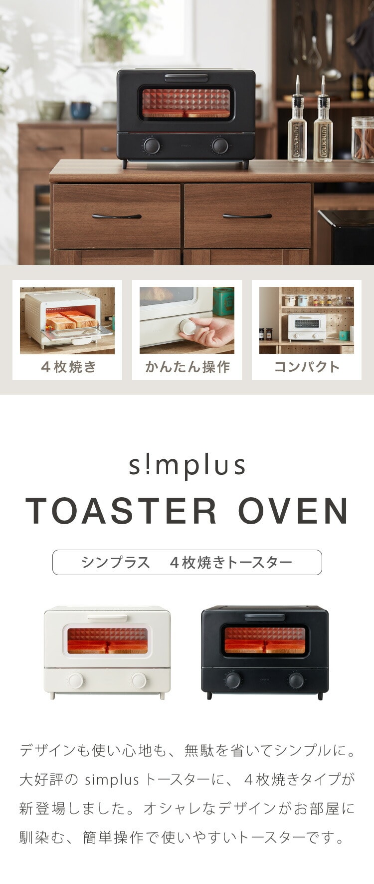simplus トースター 1200W 4枚焼き オーブントースター 80℃~230℃ タイマー付き 温度無段階調整 簡単手入れ コンパクト マット シンプル 朝食 ピザ 冷凍食品 おしゃれ シンプラス SP-TF01 一人暮らし【送料無料】【メーカー保証1年】
