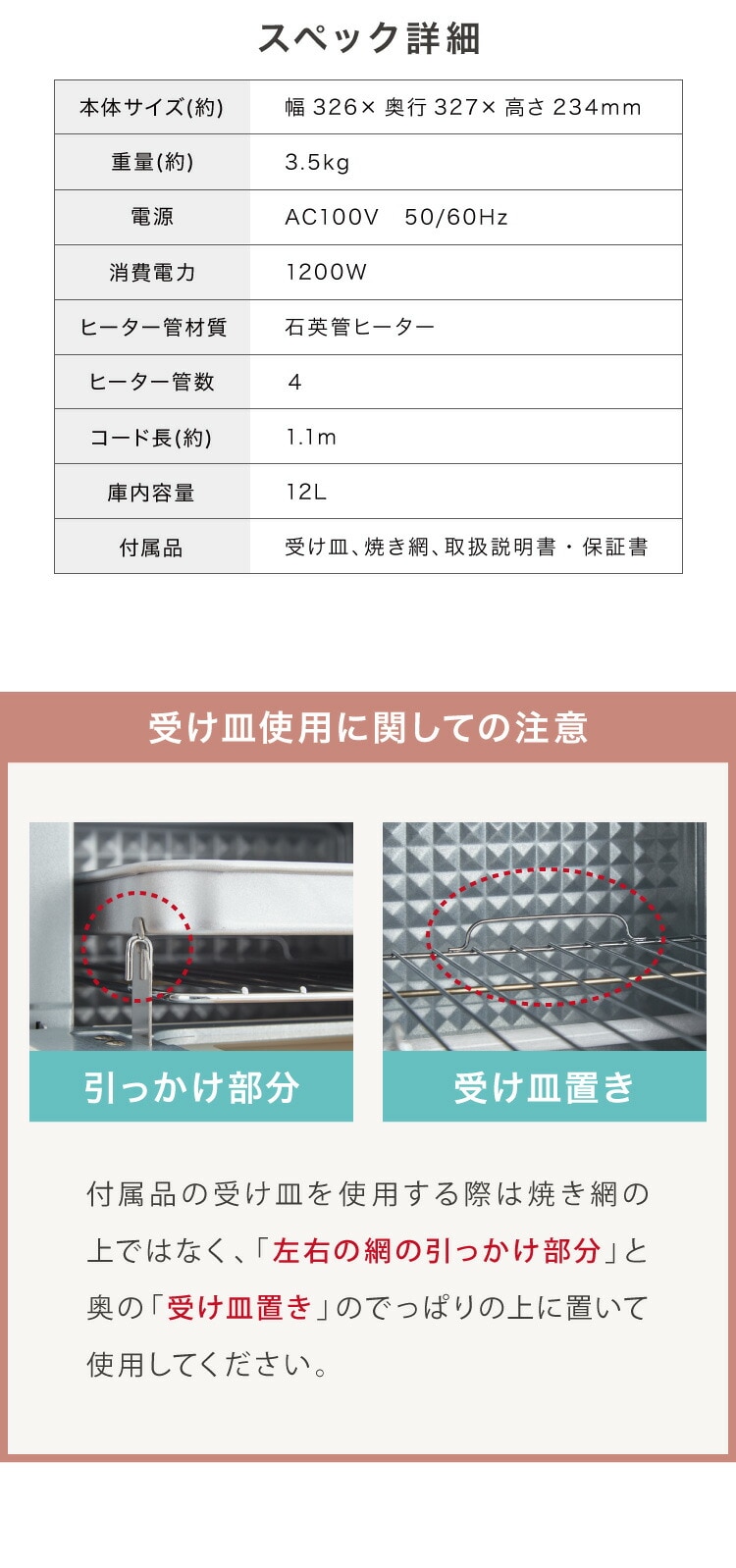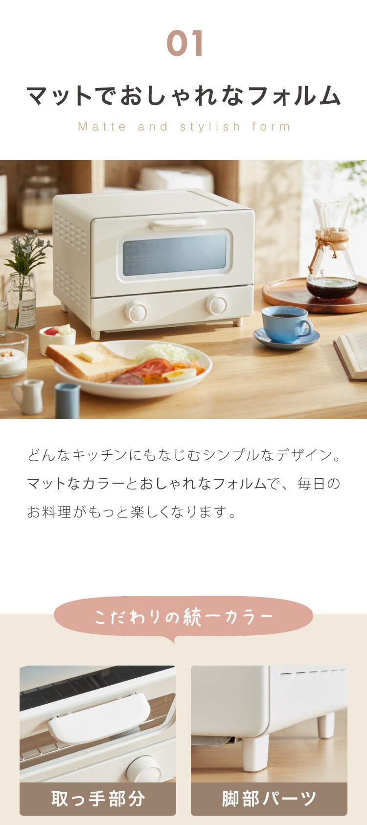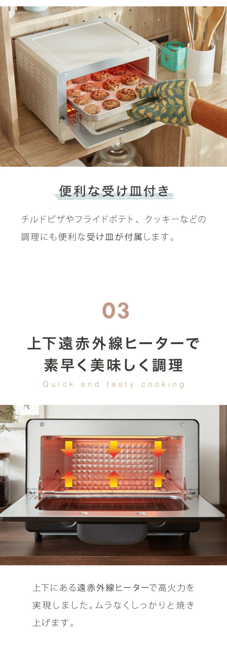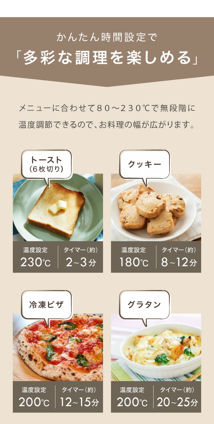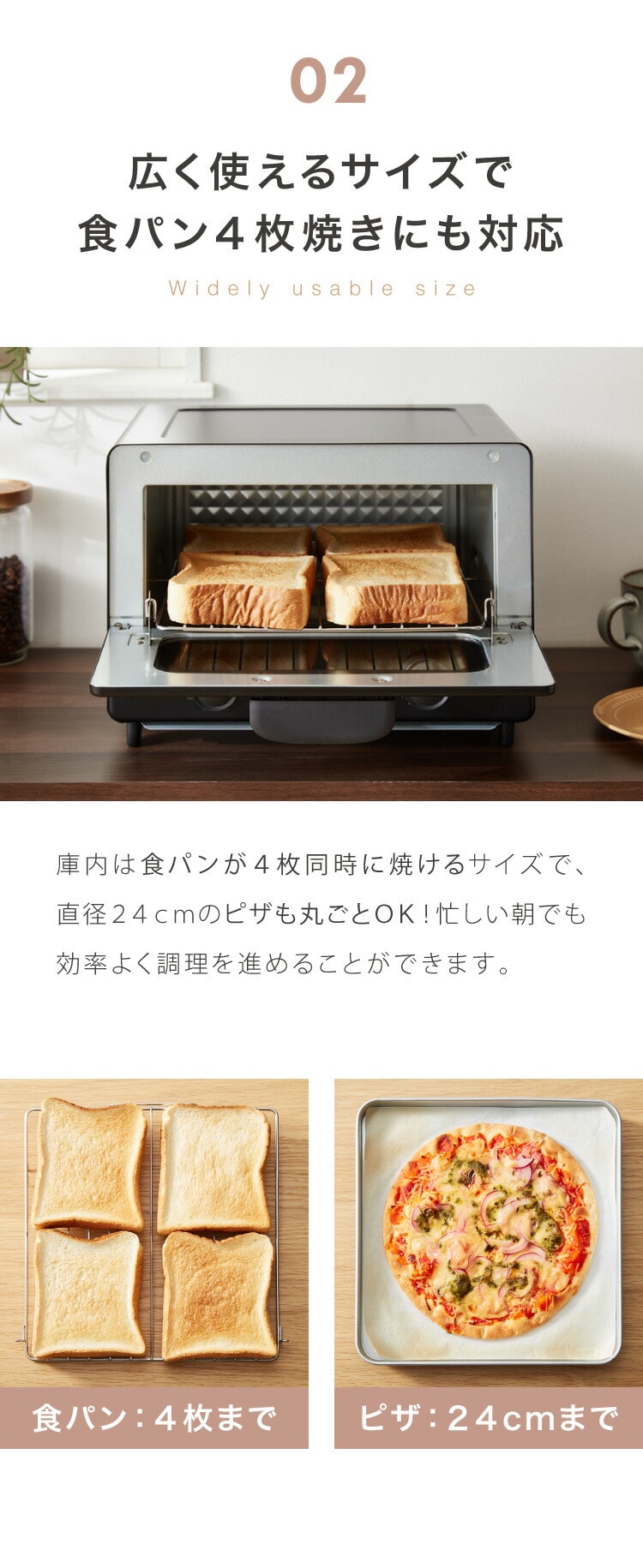 → 高火力で素早く加熱でき、トーストはもちろん、グラタンや冷凍食品の温めもスピーディーにこなせます。