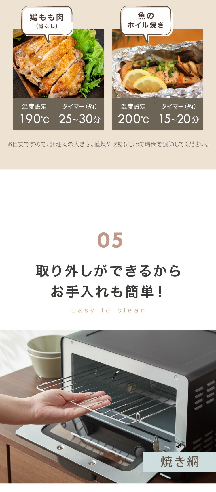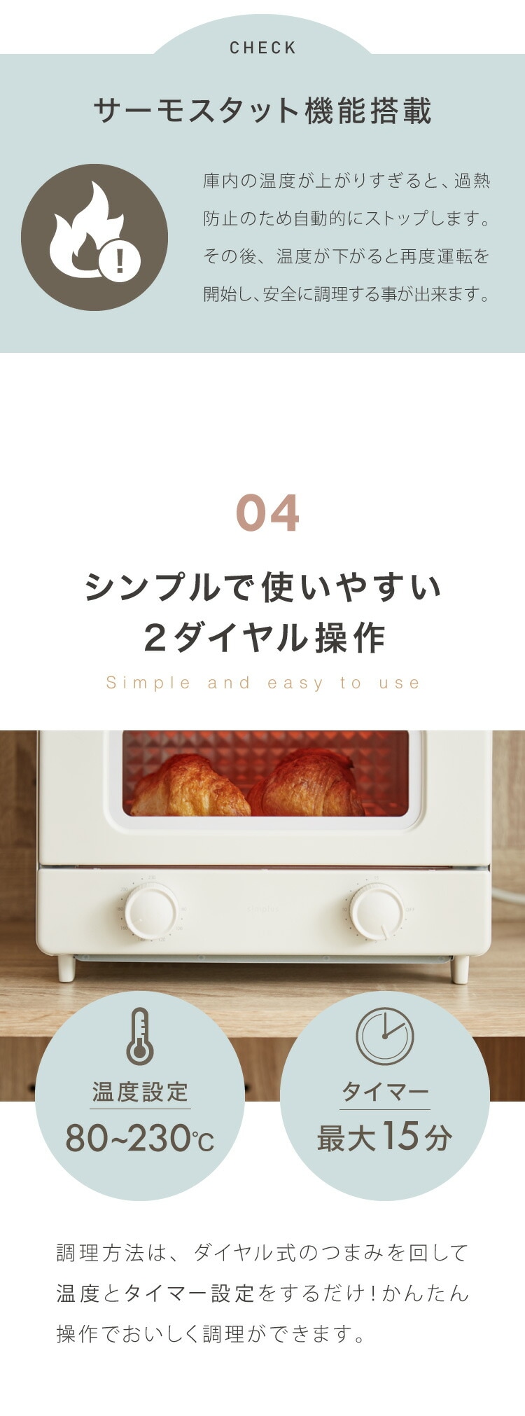 → 食材や用途に応じて細かく温度調節可能。トースト、焼き菓子、再加熱など幅広く対応できる万能調理器具。