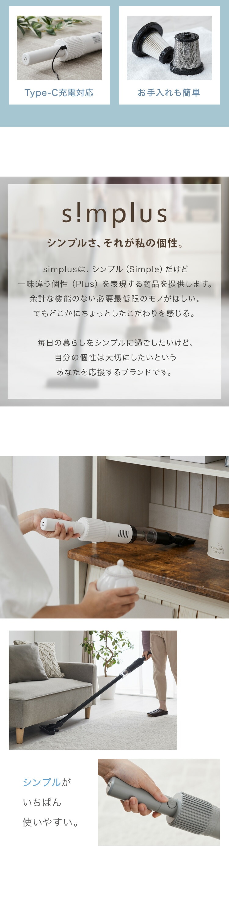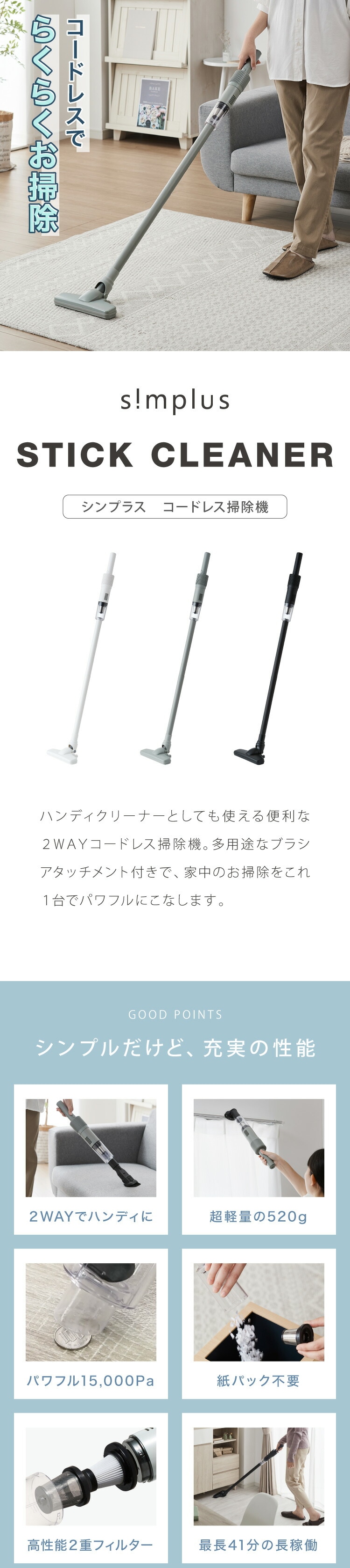 simplus コードレス掃除機 スティック ハンディ 2way 超軽量 紙パック不要 超強力吸引 15000pa 8000pa コンパクト 小型掃除機 車用掃除機 多機能 充電式 ノズル6種付き シンプラス SP-VC02【送料無料】【メーカー保証1年】