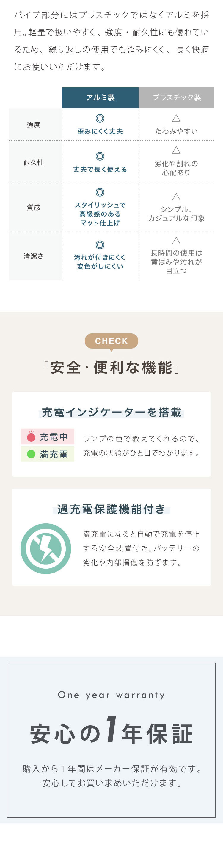 10. 長時間稼働&大容量バッテリー(2200mAh×3本)
