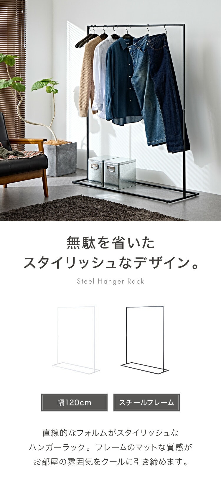 ・スタイリッシュなスチールフレームのハンガーラックです。