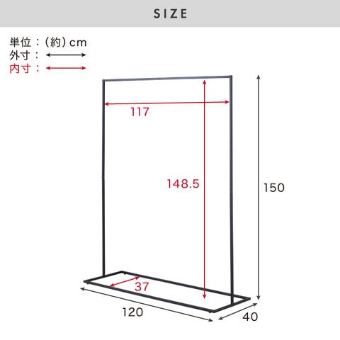 幅120cm×奥行き40cm×高さ149.5~150.3cm