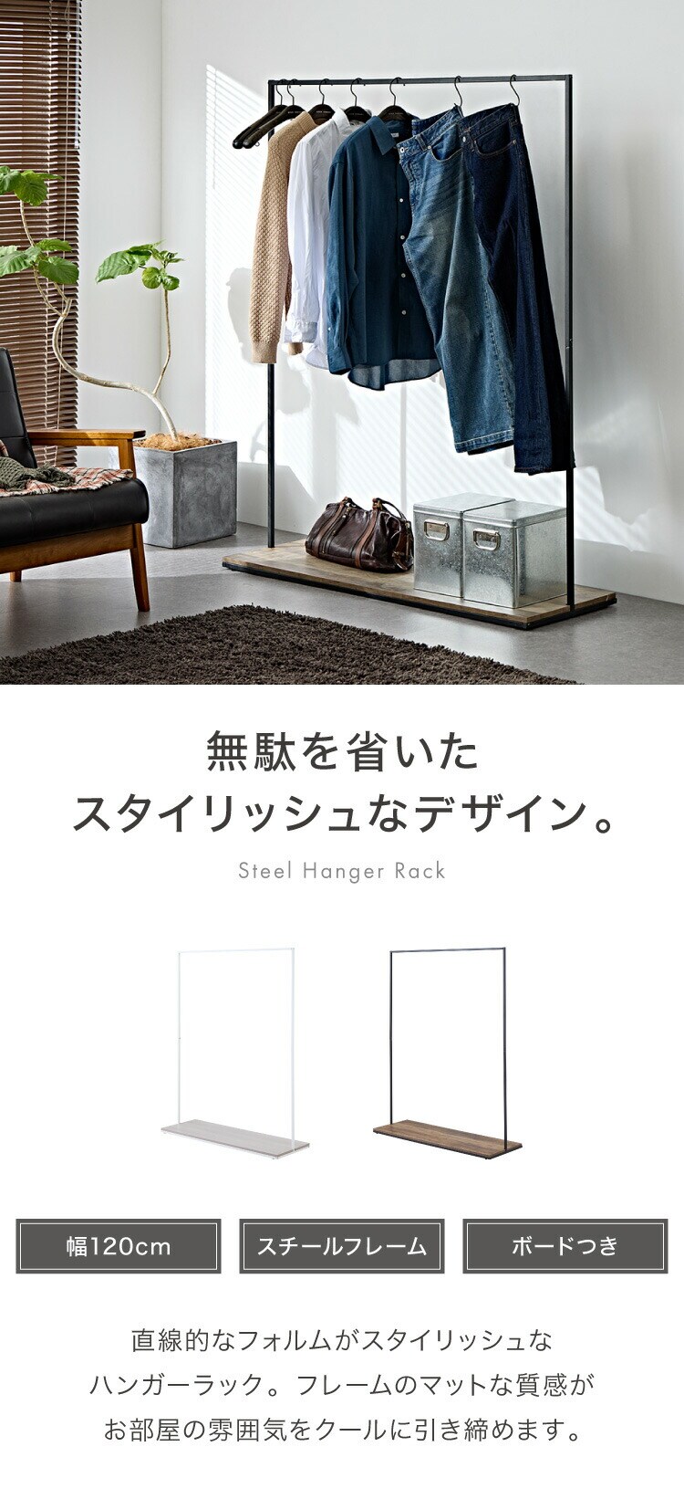 ・スタイリッシュなスチールフレームのハンガーラックです。
