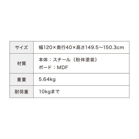 幅120cm×奥行き40cm×高さ149.5~150.3cm