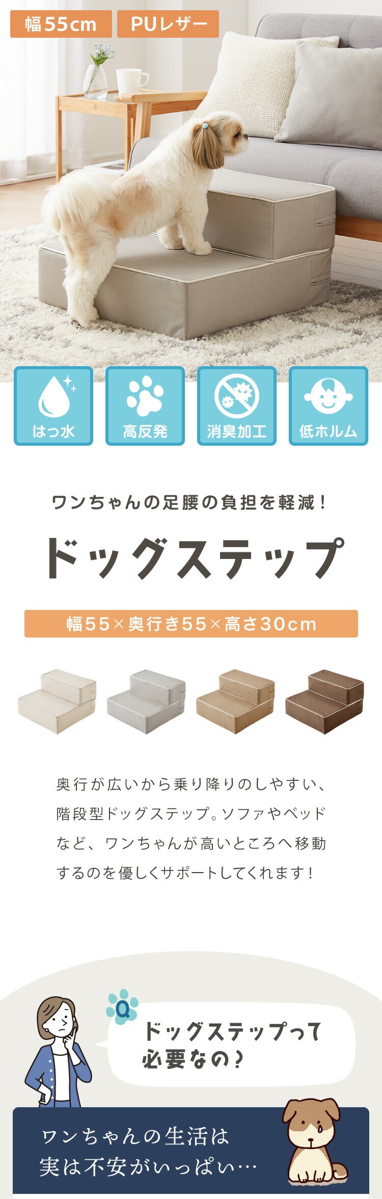 ドッグステップ 2段 階段 PUレザー 撥水 滑り止め 幅55cm ペットステップ 踏み台 ステップ 室内犬 ペット用品 ペットスロープ 小型犬 高齢犬 介護用品 ソファ シニア犬 補助 犬用品 トイプードル【送料無料】