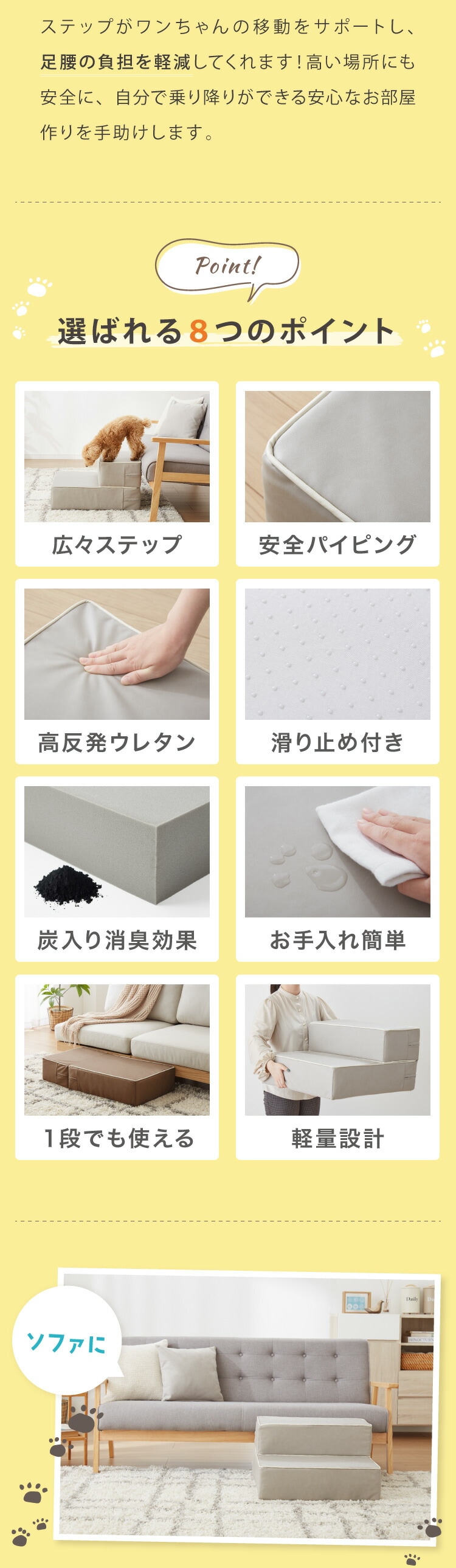 ドッグステップ、2段、犬用、ペットステップ、踏み台、ステップ、室内犬、ペット用品、滑らない、犬階段、階段、負担軽減、老犬、中型犬、小型犬、高齢犬、介護用品、ソファ、シニア犬、補助、犬用品、ウレタン