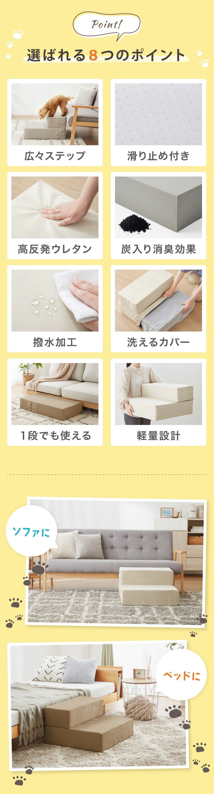 ドッグステップ、2段、犬用、ペットステップ、踏み台、ステップ、室内犬、ペット用品、滑らない、犬階段、階段、負担軽減、老犬、中型犬、小型犬、高齢犬、介護用品、ソファ、シニア犬、補助、犬用品、ウレタン