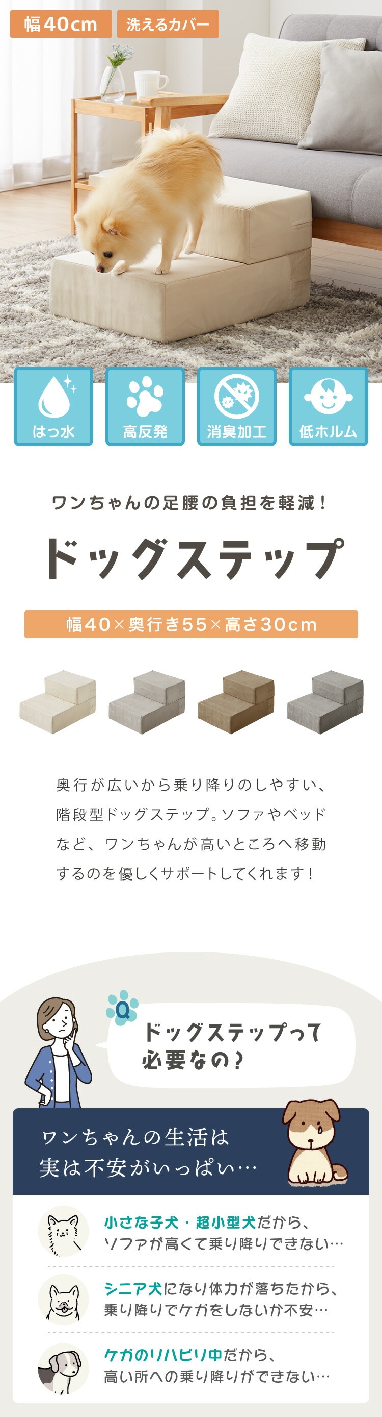 ドッグステップ、2段、犬用、ペットステップ、踏み台、ステップ、室内犬、ペット用品、滑らない、犬階段、階段、負担軽減、老犬、中型犬、小型犬、高齢犬、介護用品、ソファ、シニア犬、補助、犬用品、ウレタン
