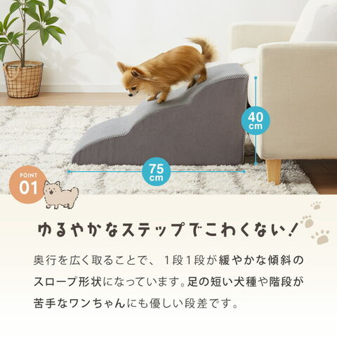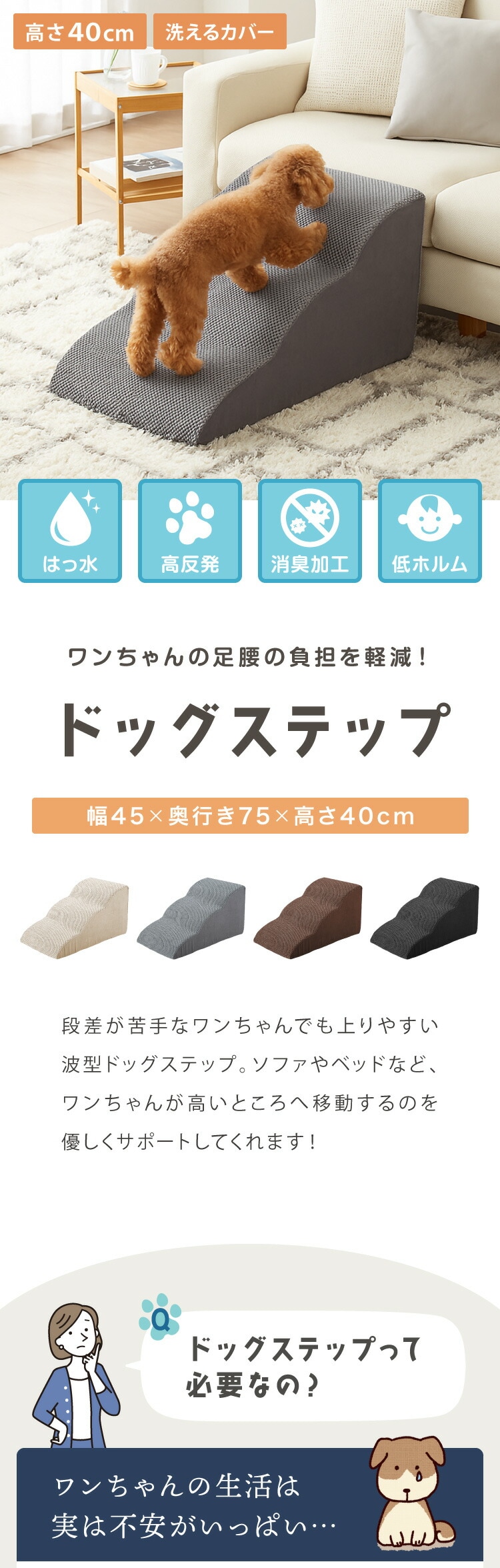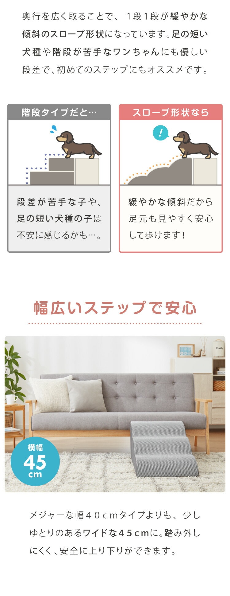 ドッグステップ 3段 スロープ 幅45cm ドッグスロープ ウレタン 撥水 クッション 踏み台 ステップ ペットステップ 室内犬 シニア犬 老犬 介護用品 ケガ防止 小型犬 犬用品 補助 トイプードル【送料無料】