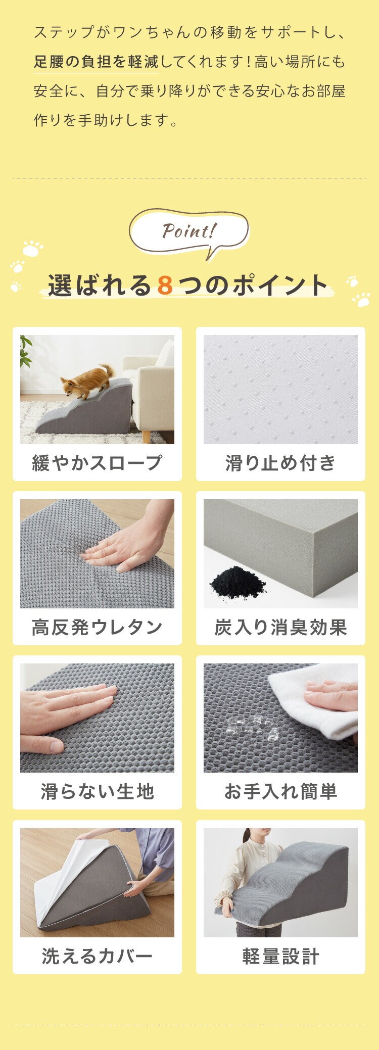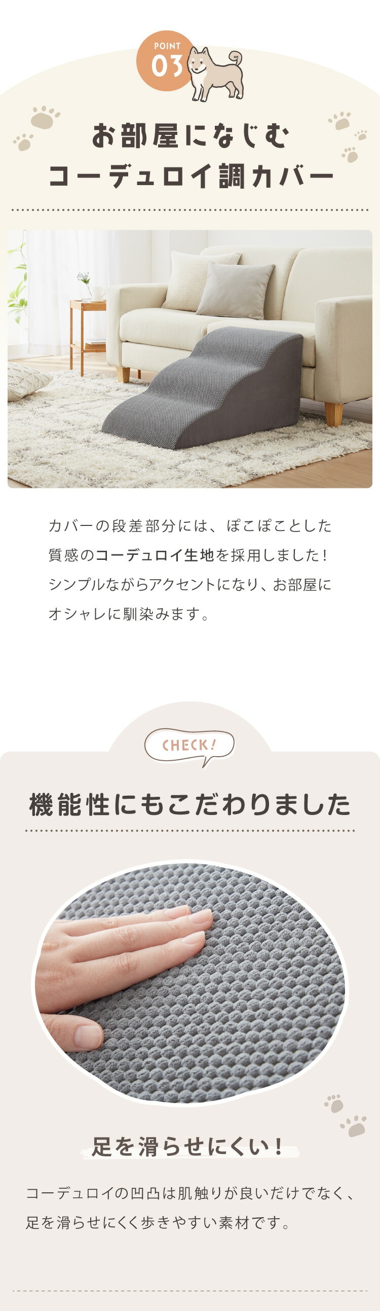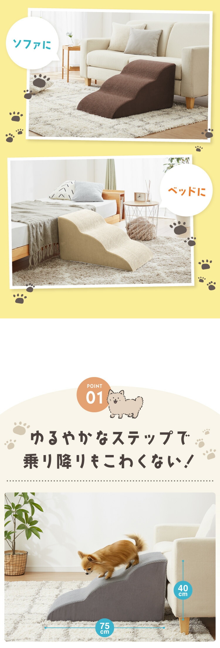 ドッグステップ、3段、犬用、ペットステップ、踏み台、ステップ、室内犬、ペット用品、撥水、クッション、犬階段、階段、負担軽減、老犬、中型犬、小型犬、高齢犬、介護用品、ソファ、シニア犬、補助、犬用品、ウレタン