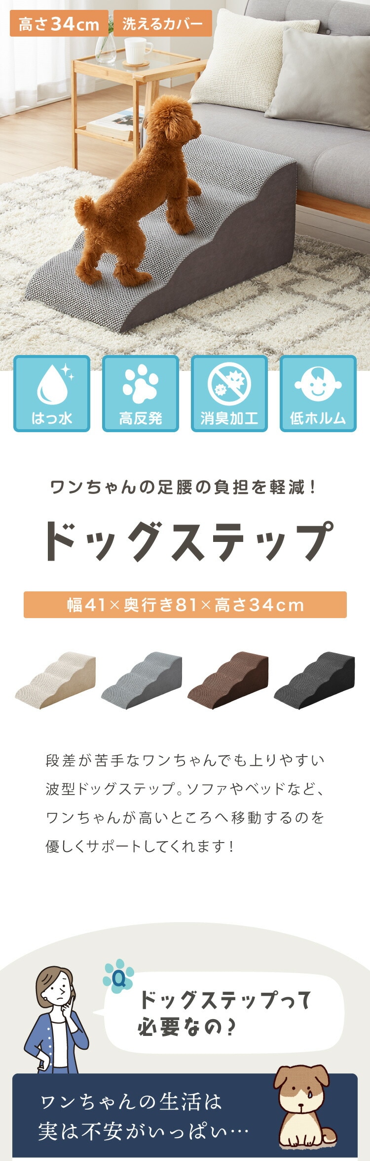 ドッグステップ 4段 スロープ 幅41cm ドッグスロープ ウレタン 撥水 クッション 踏み台 ステップ ペットステップ 室内犬 シニア犬 老犬 介護用品 ケガ防止 小型犬 犬用品 補助 トイプードル【送料無料】