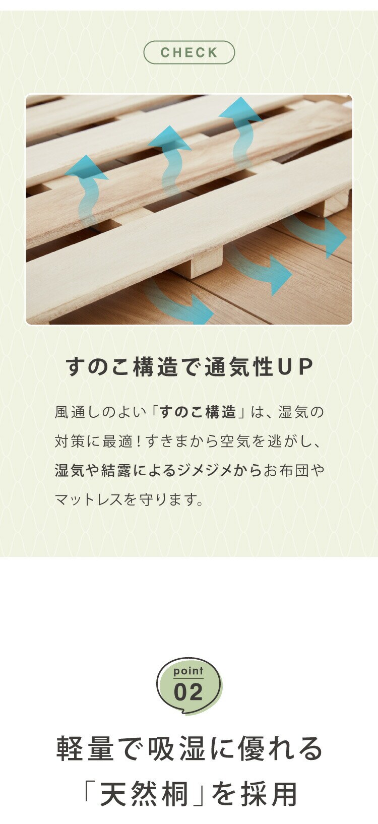 カビ防止、梅雨、結露、カビ、対策、防止、湿気、桐材、布団、室内、寝具、収納、調湿効果、調湿、湿気、ベット、すのこベット、通気性