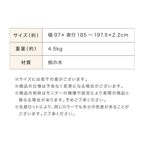 幅97×奥行185~197.5×2.2cm