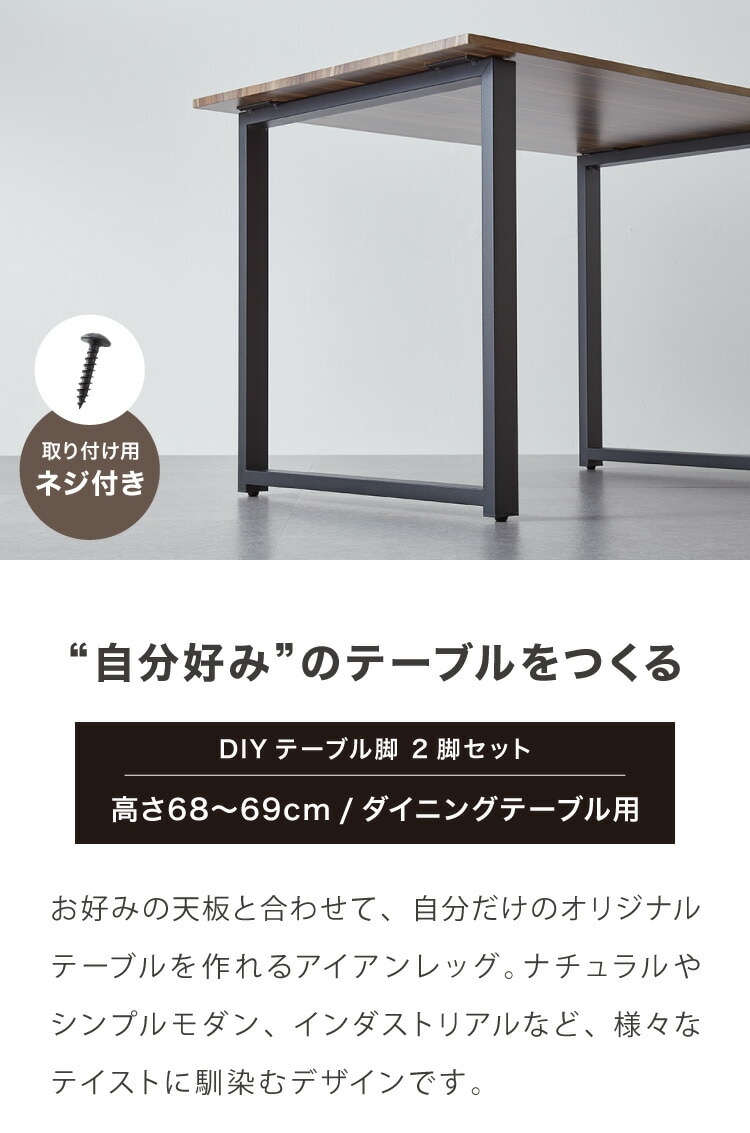 テーブル、脚、パーツ、ダイニングセット、ネジ付き、ネジ、脚のみ、黒、ブラック、鉄脚、アンティーク、自作、アイアンレッグ、スチール脚、取り替え、取り換え用、リビング、デザイン、組み立て自由、レイアウト、高さ68cm、高さ70cm、北欧