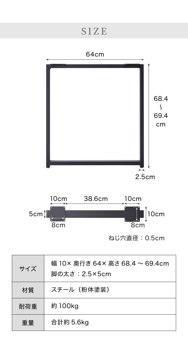 幅10×奥行き64×高さ68.4~69.4cm