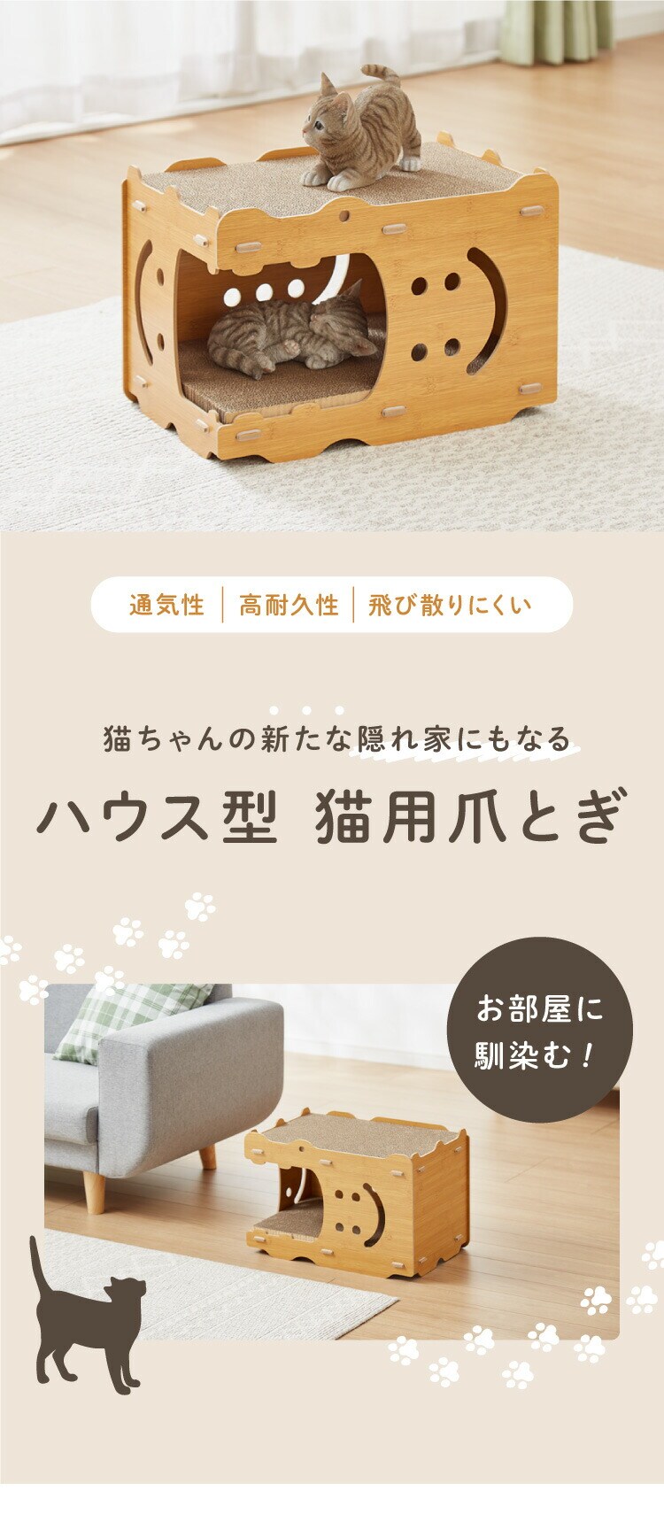 猫、爪とぎ、ダンボールハウス、組み立て、簡単、猫用品、ペット用品、おもちゃ、ストレス解消、ペットハウス、キャットハウス、キャットタワー、ダンボールハウス、ベッド、ネコ、ねこ、省スペース、多頭飼い、高密度段ボール、段ボール、耐久性、組み立て式