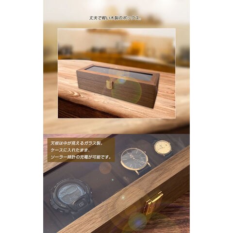 透明な窓で、コレクションケースとしても最適です。ソーラー時計の充電も可能。