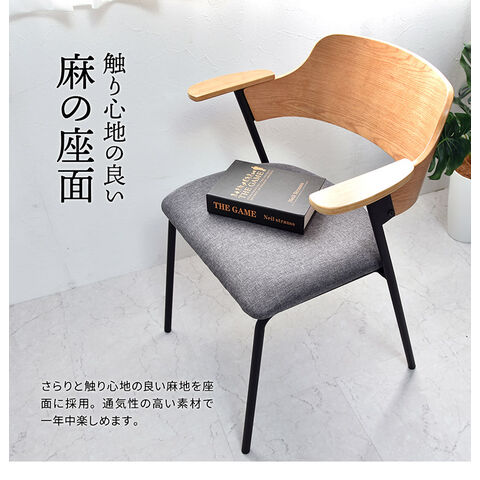 高密度ウレタンに麻の張地を採用した座面は座り心地がよいダイニングチェア。