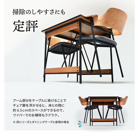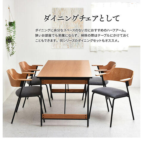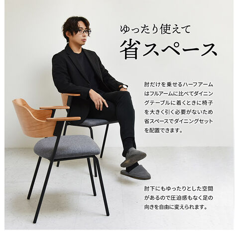 肘だけを乗せるハーフアームはフルアームに比べてダイニングテーブルに着くときに椅子を大きく引く必要がないないため省スペース。
