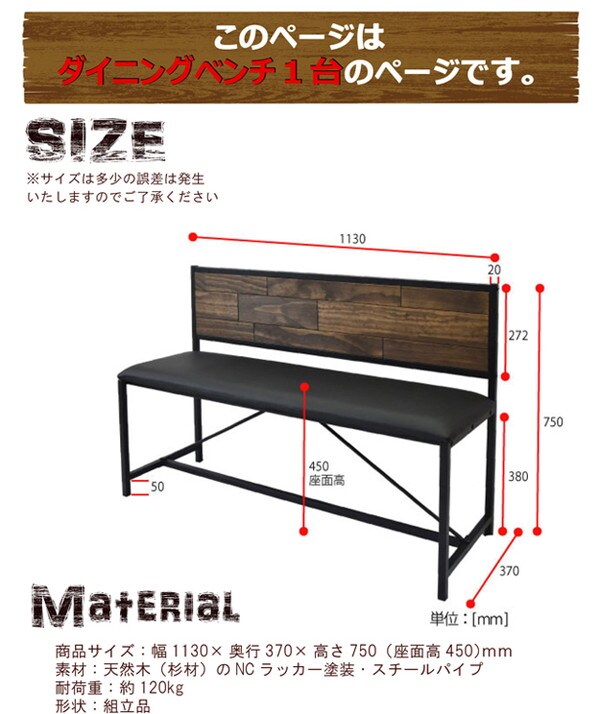 GRANT ダイニングベンチ 天然木 北欧 木製 椅子 イス チェア アイアン 木目 収納 アンティーク ダイニングチェア 二人掛け 2人掛け【送料無料】