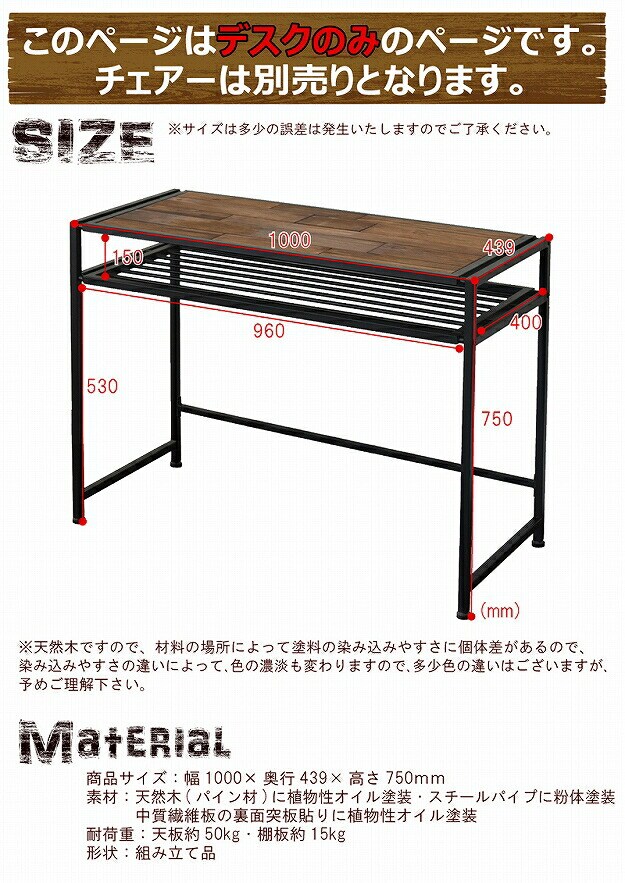 耐 荷 重:約50kg(天板部分)/約15kg(棚板部分)