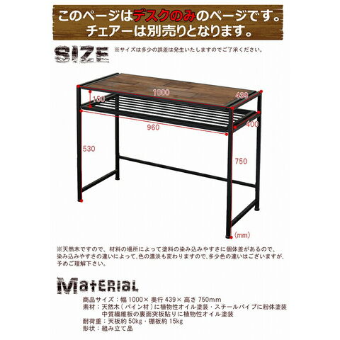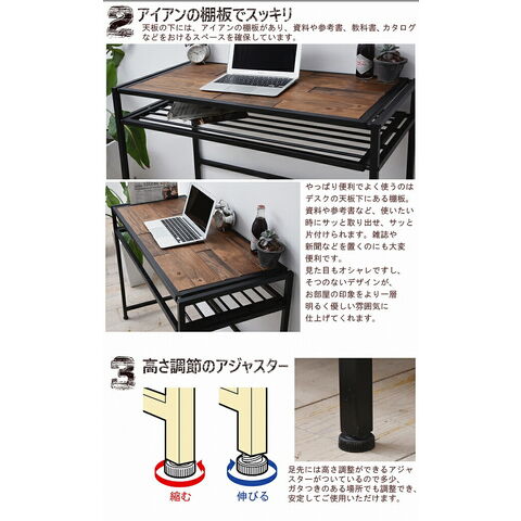 木製デスク 天然木 北欧 木製 パソコンデスク 勉強机 パソコン台 PCデスク 学習 デスク 書斎 アイアン アンティーク【送料無料】のレビュー