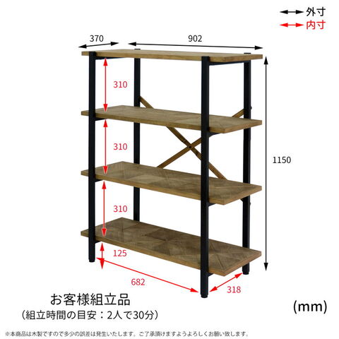 耐荷重:棚板:約15kg(1枚)=全体約60kg