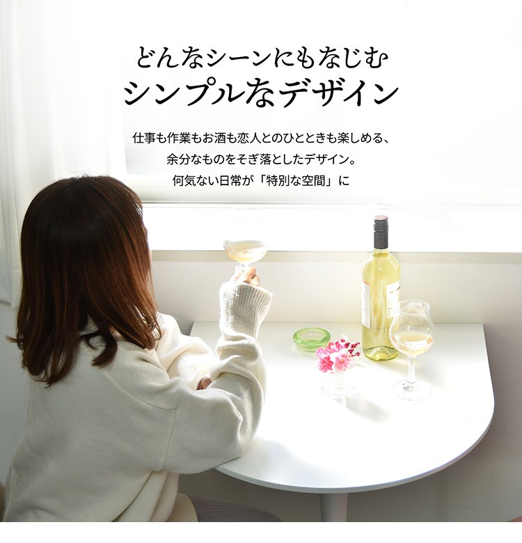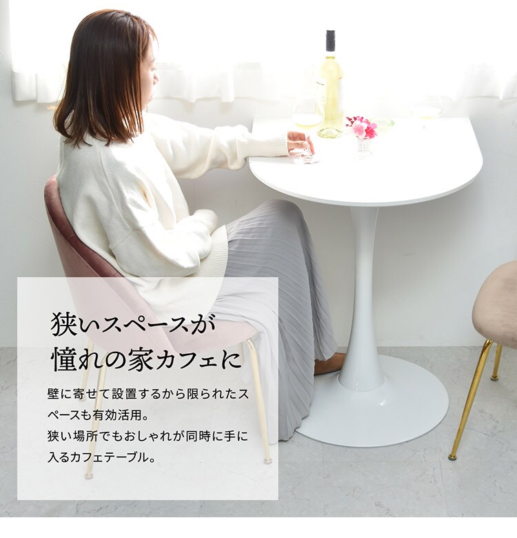 テーブルの一辺が壁にかけられるようにデザインされたハーフラウンドテーブル。