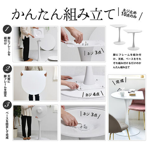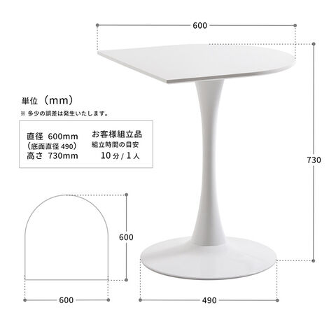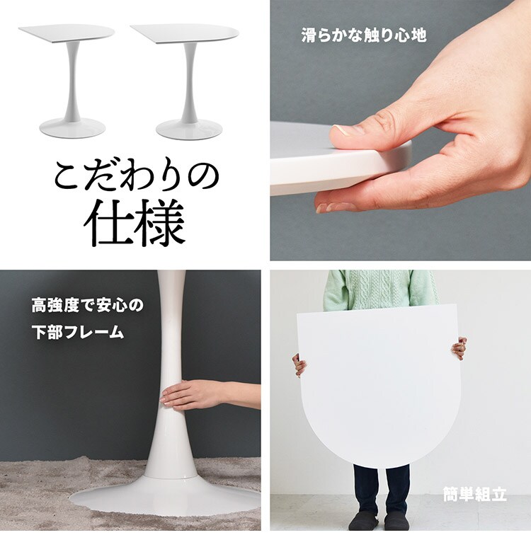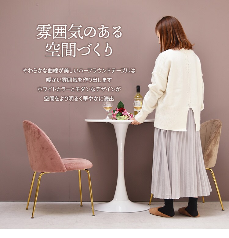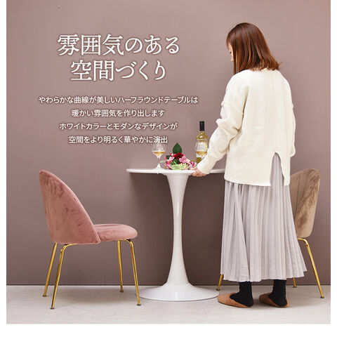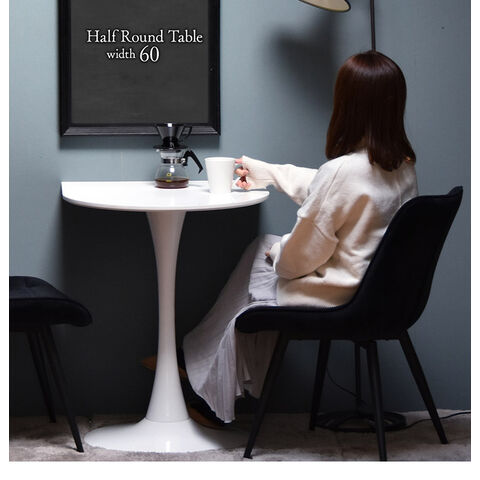 ハーフラウンドテーブル 60cm【ホワイト】 W600×D600×H730mm 半円テーブル チューリップコーヒーテーブル カフェテーブル ラウンドテーブル カマボコ型テーブル カフェ ダイニングテーブル【送料無料】