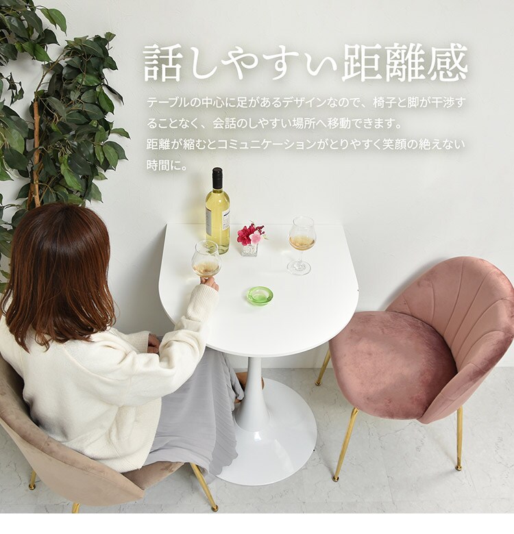 テーブルの中心に足があるデザインなので、椅子と脚が干渉することなく会話のしやすい場所へ移動できます。
