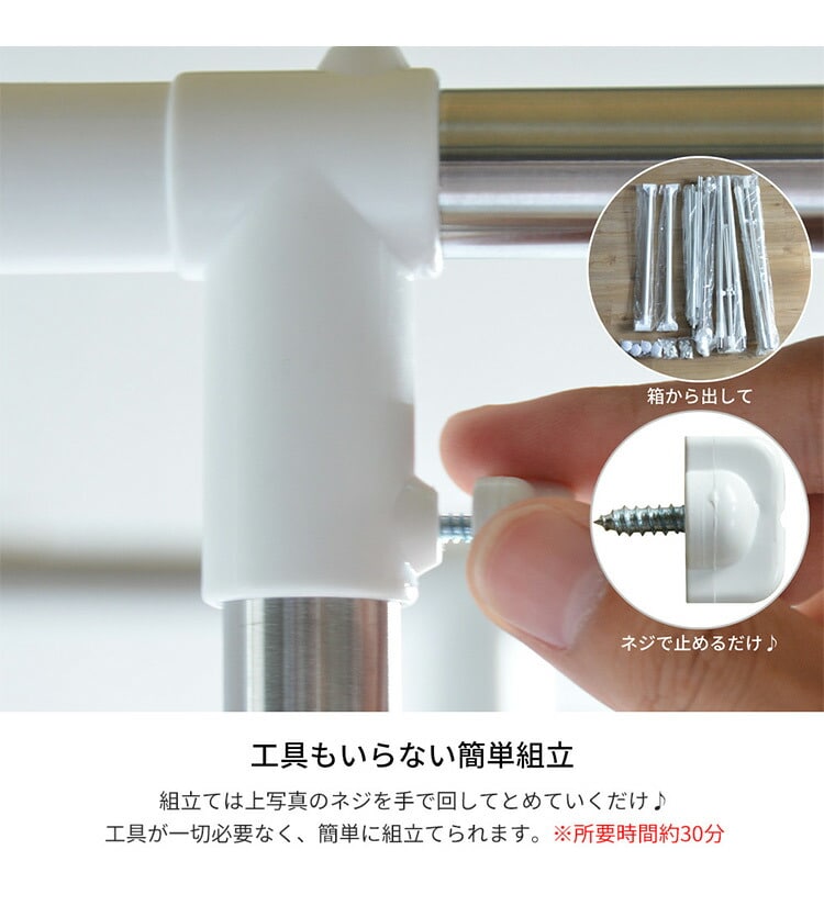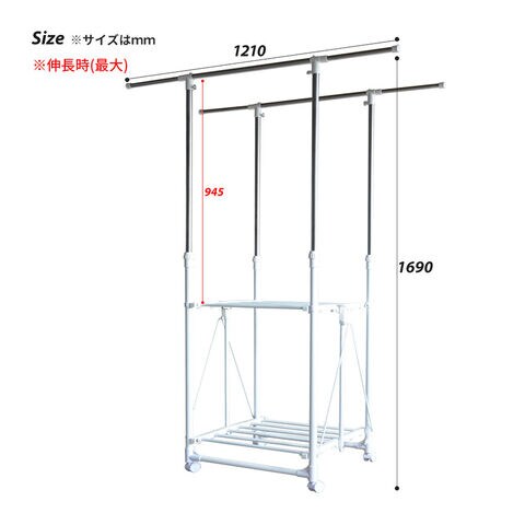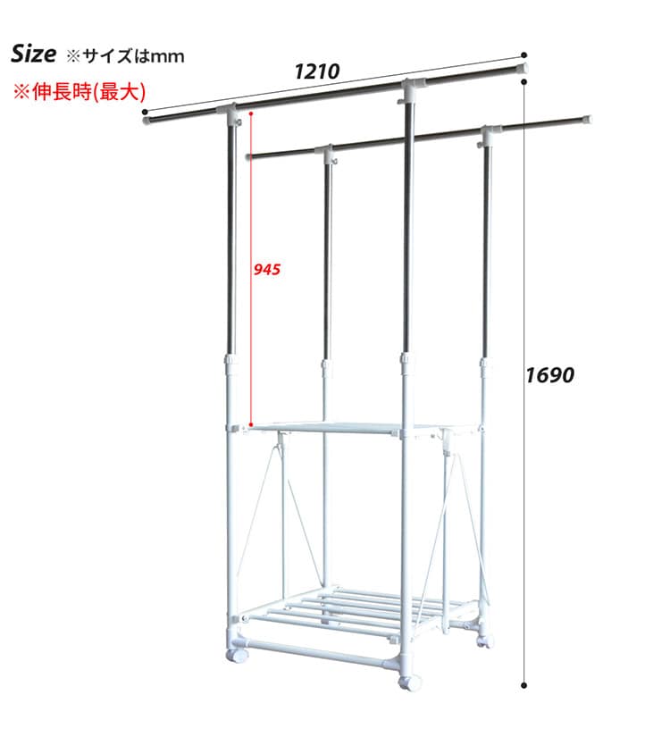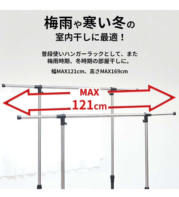 幅が77cm~121cmとワイドな設計でお気に入りの洋服を収納することができます。