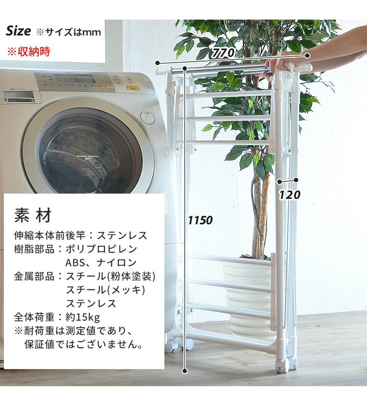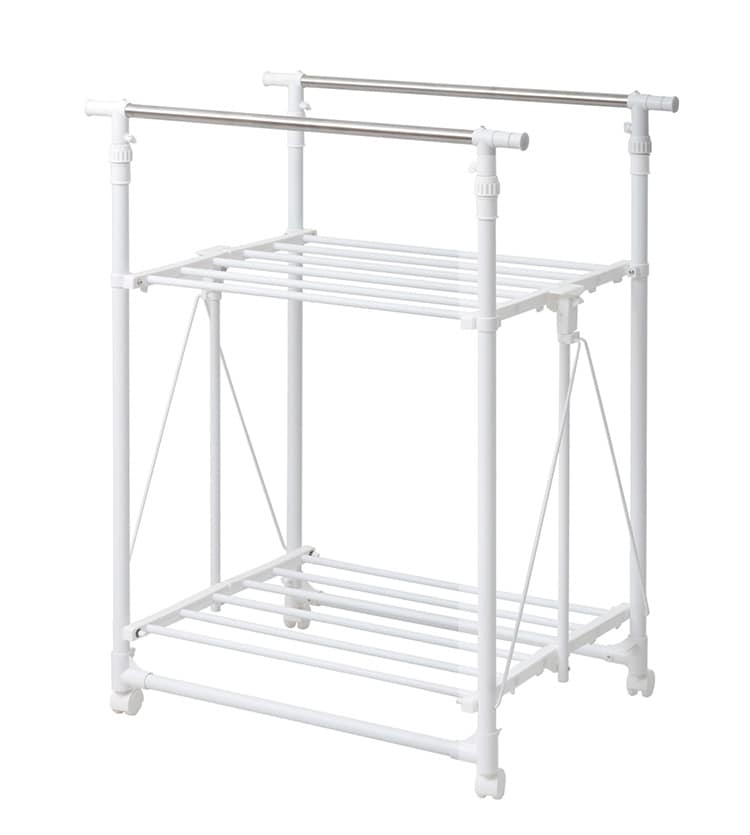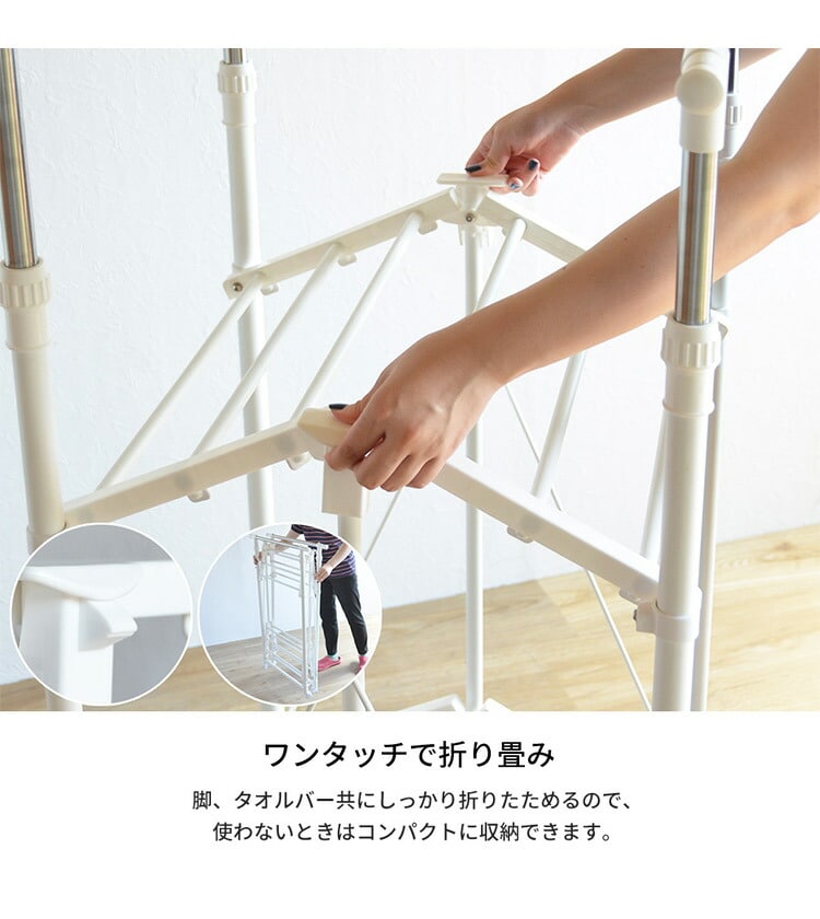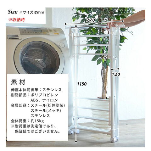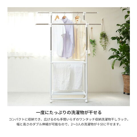 ワンタッチ収納 洗濯 物干しラック ワイド ハンガーラック おしゃれ 幅77 コンパクト 2段 二段 ランドリーラック 省スペース 棚付き コート ジャケット 北欧【送料無料】