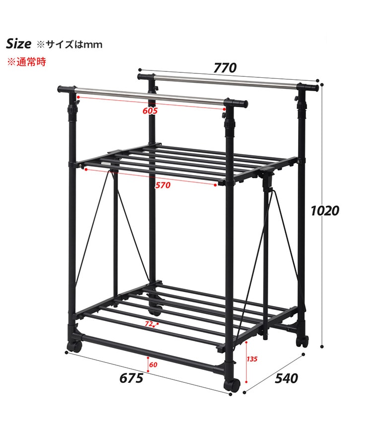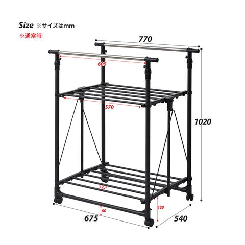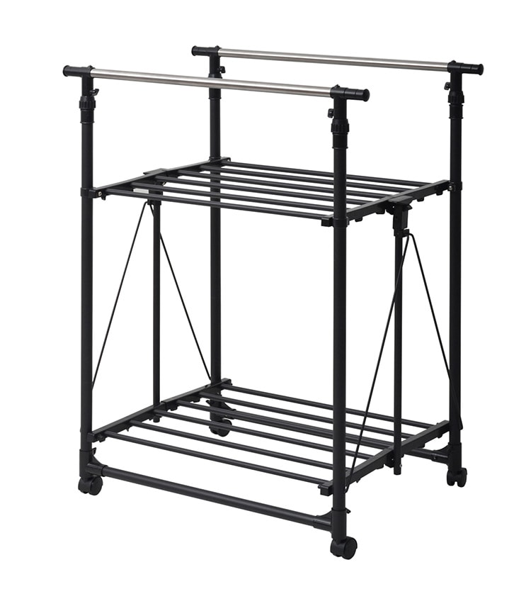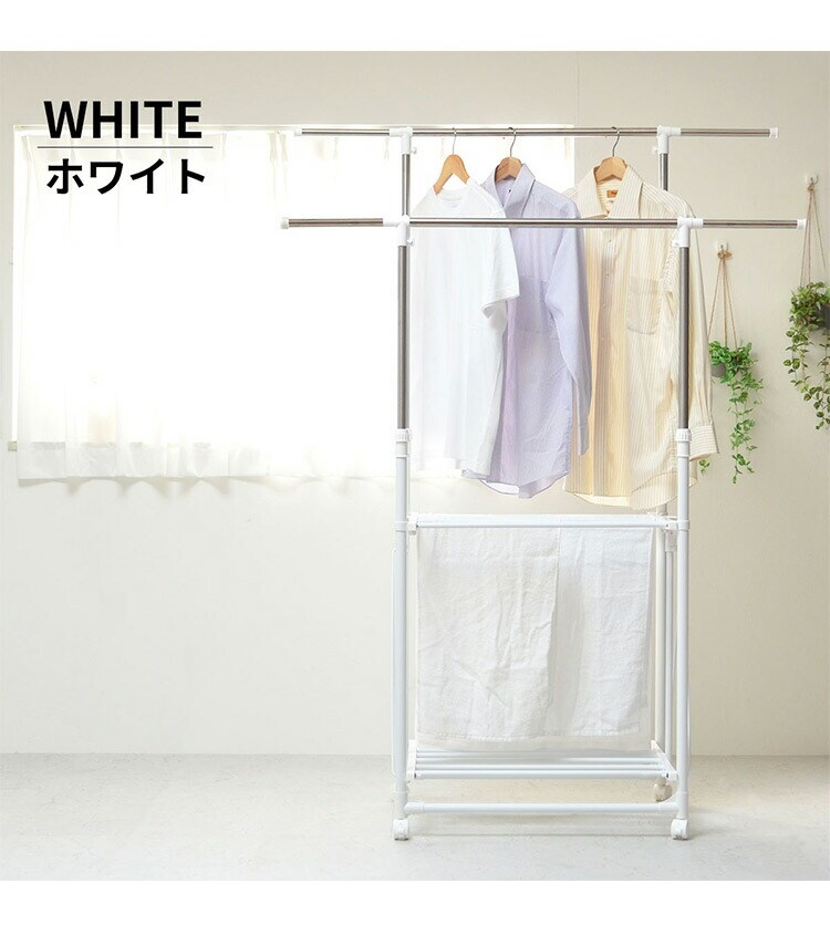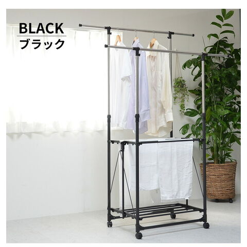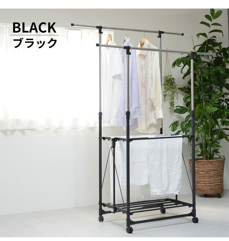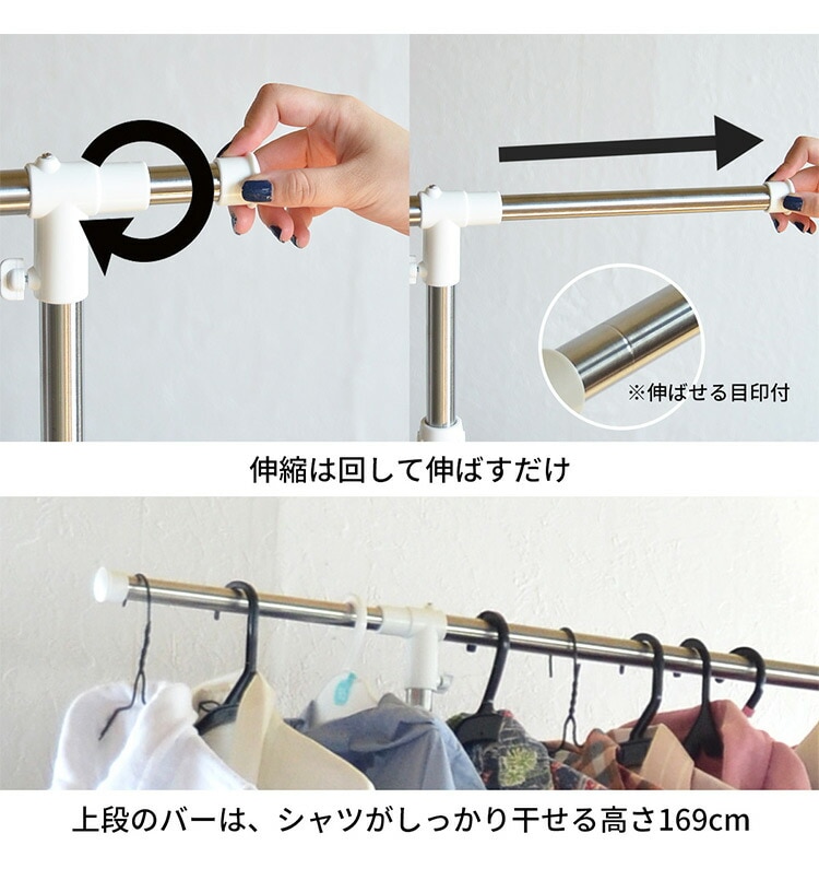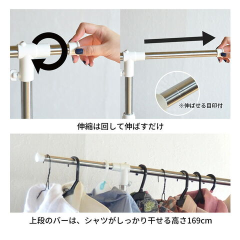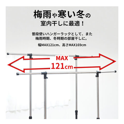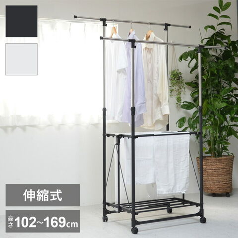収納の幅に長けた伸縮式ハンガーラック。