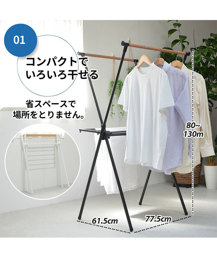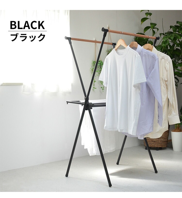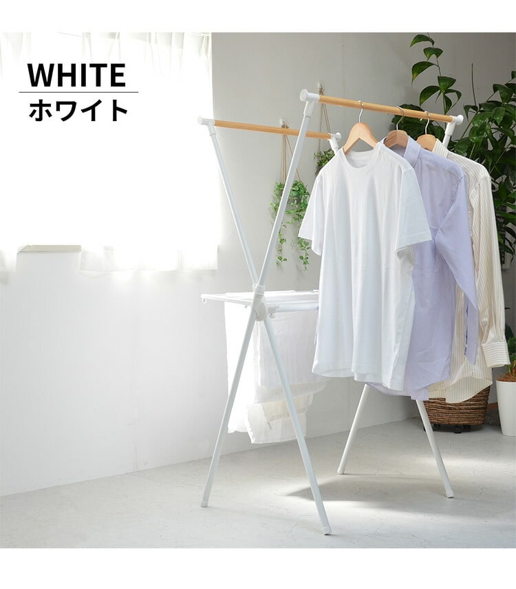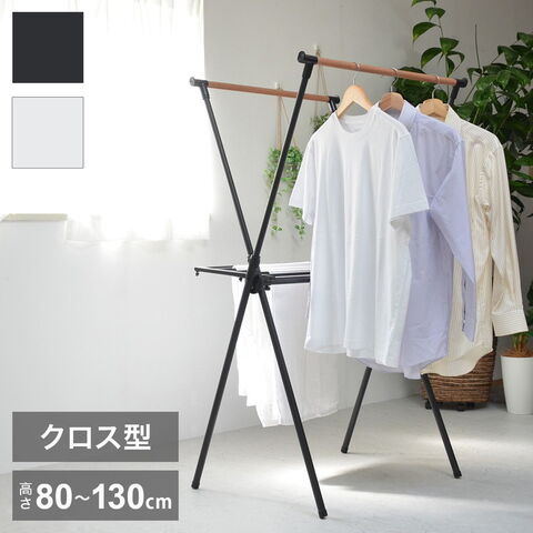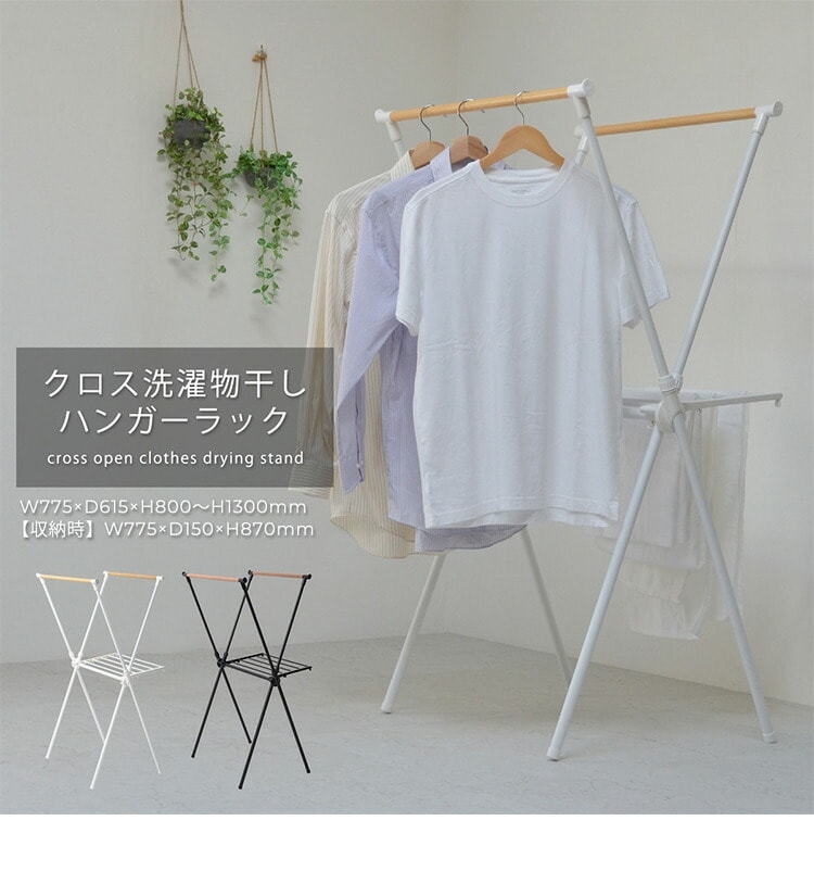 クロス 洗濯 物干し ハンガーラック オープンラック 棚付き おしゃれ 白 黒 モノトーン 大容量 収納 衣類収納 頑丈 コート ジャケット 北欧【送料無料】