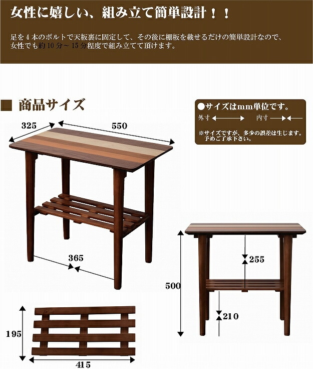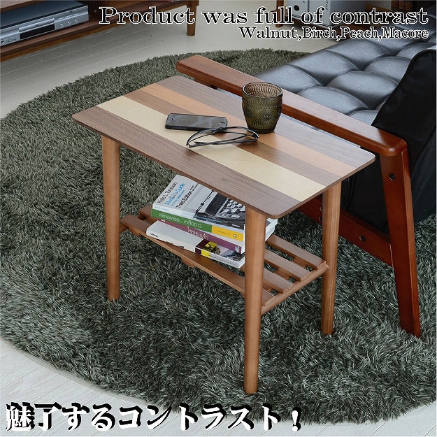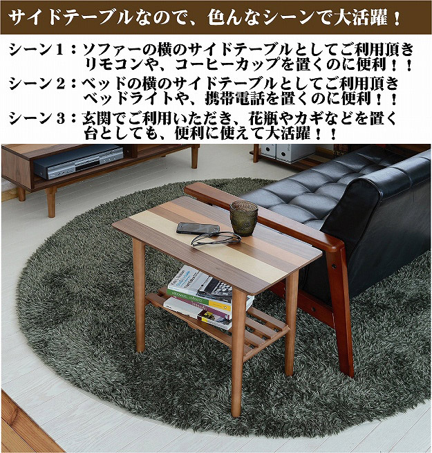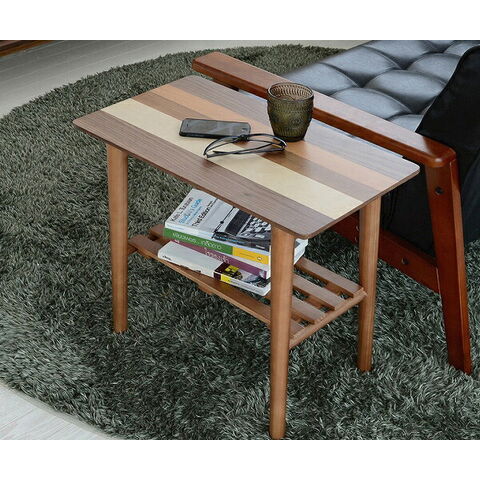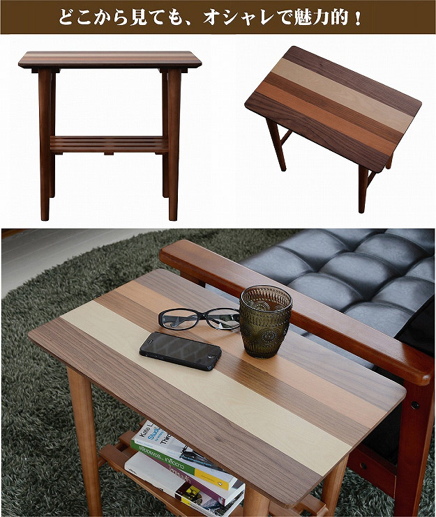 天然木 サイドテーブル テーブル 四角形 幅55 奥行き32.5 ロ―テーブル ナイトテーブル 北欧 ウォールナット 棚付き 収納付き おしゃれ 机 脇机【送料無料】