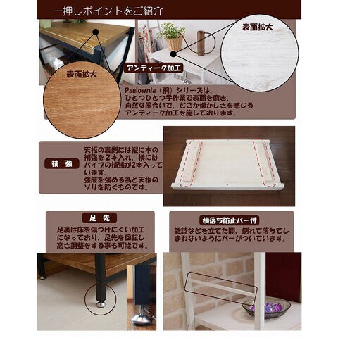 またアンティーク調に加工された天然の桐材と、スチールパイプの組み合わせが、絶妙なバランスと、好評頂いております。