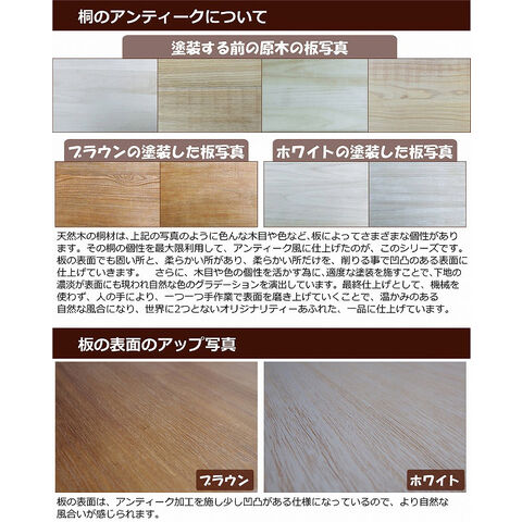 こちらの商品は、無垢の桐材に凹凸のある表面に仕上げる事で、アンティーク調に仕上がっております。